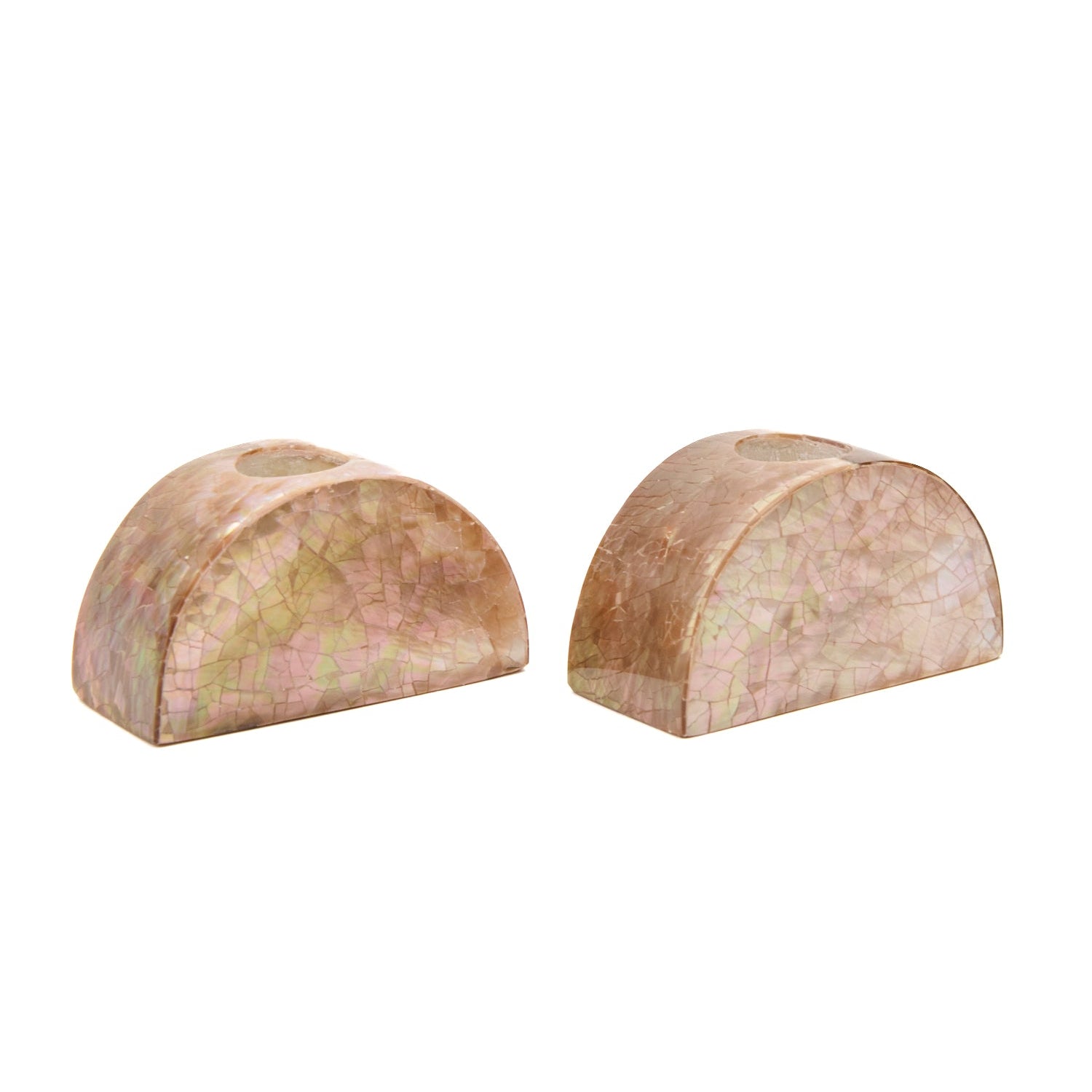 Half Moon Mother Of Pearl Candle Holders Blush, Set of 2