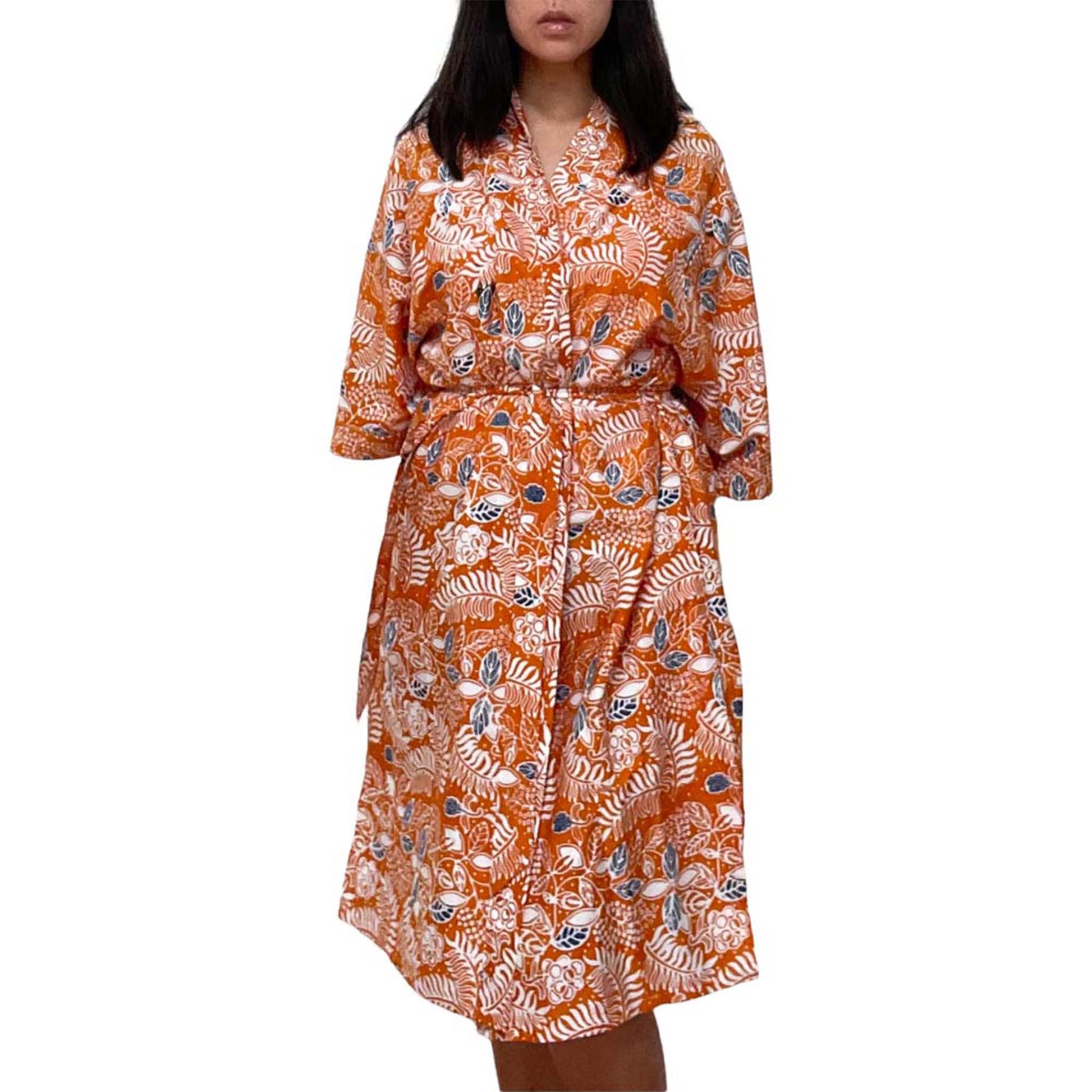 Handmade Batik Robe Kimono, Orange Carnelian, Hand Dyed, 100% Cotton, Clementine