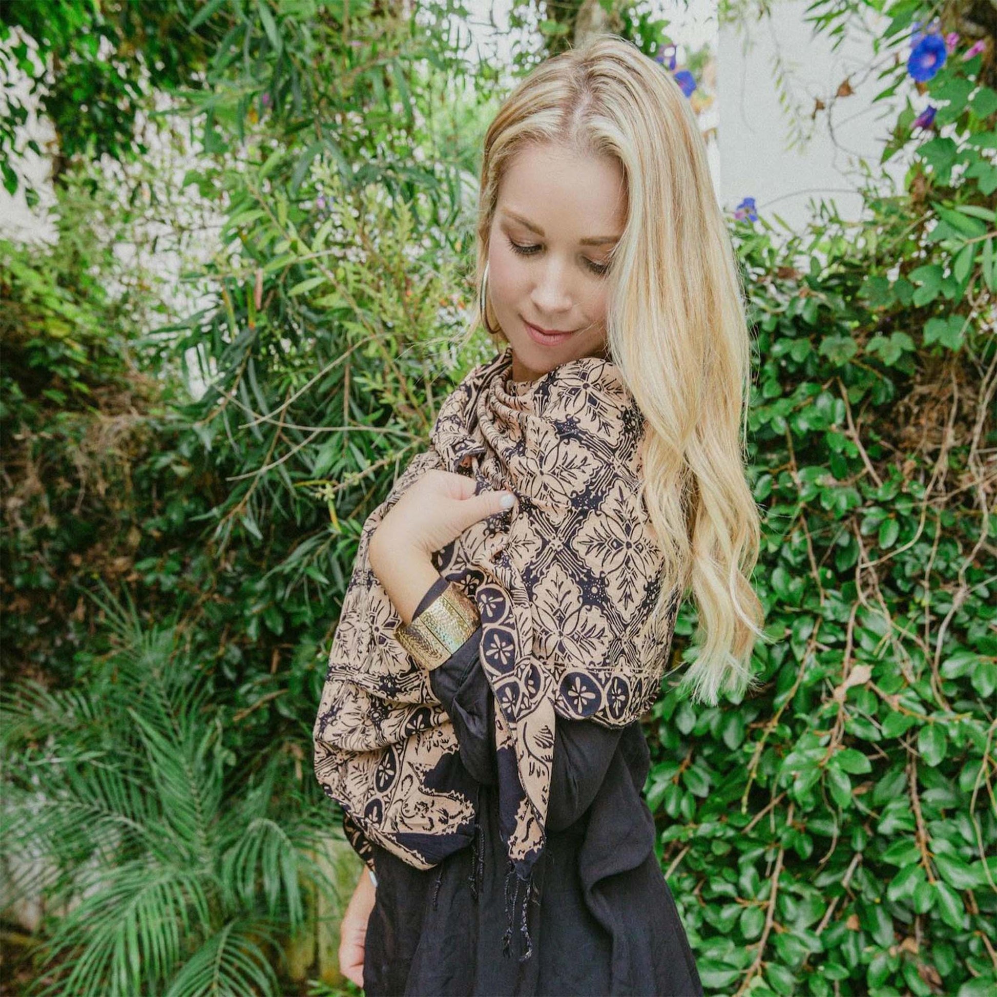 Handmade Batik Scarf, Black Brown Harvest, Hand Dyed, 100% Cotton
