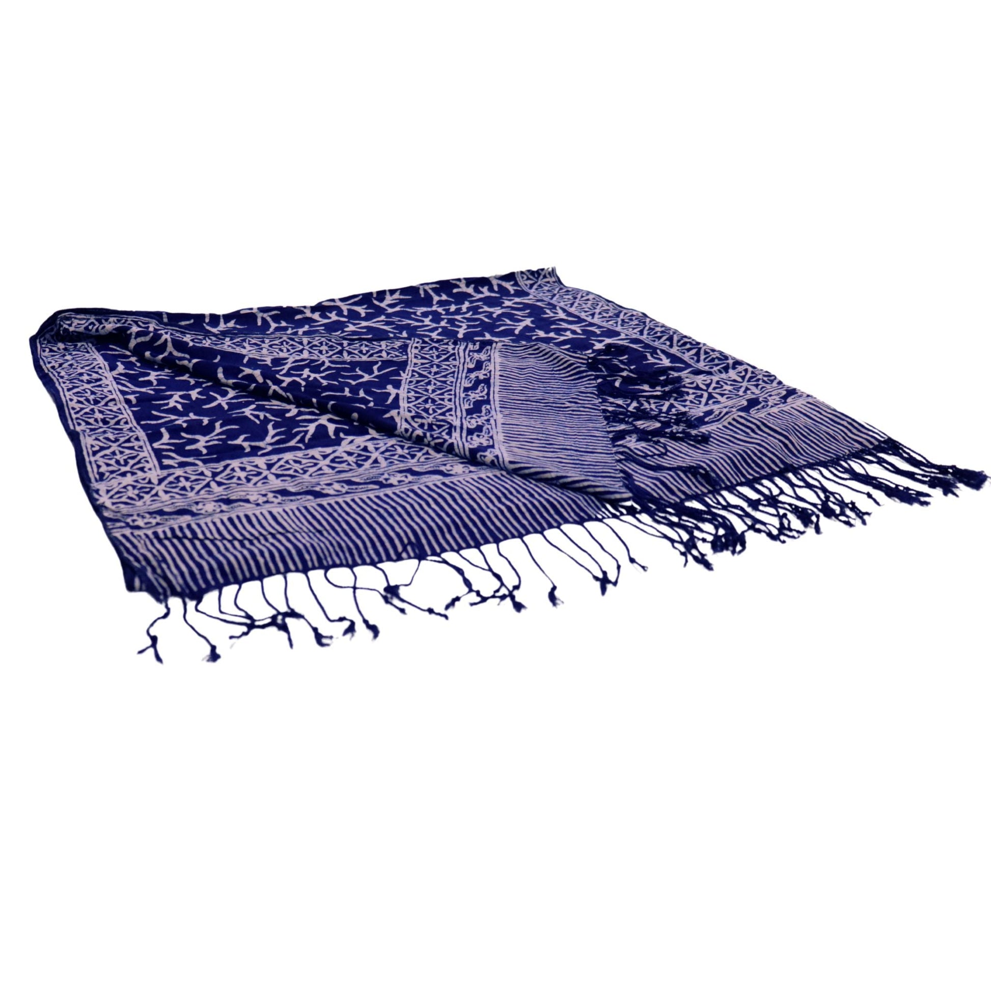 This is a hand-dyed and hand-stamped batik scarf, handmade by artisans. This fabric is handmade by artisans in Java using centuries old wax & dye batik technique.