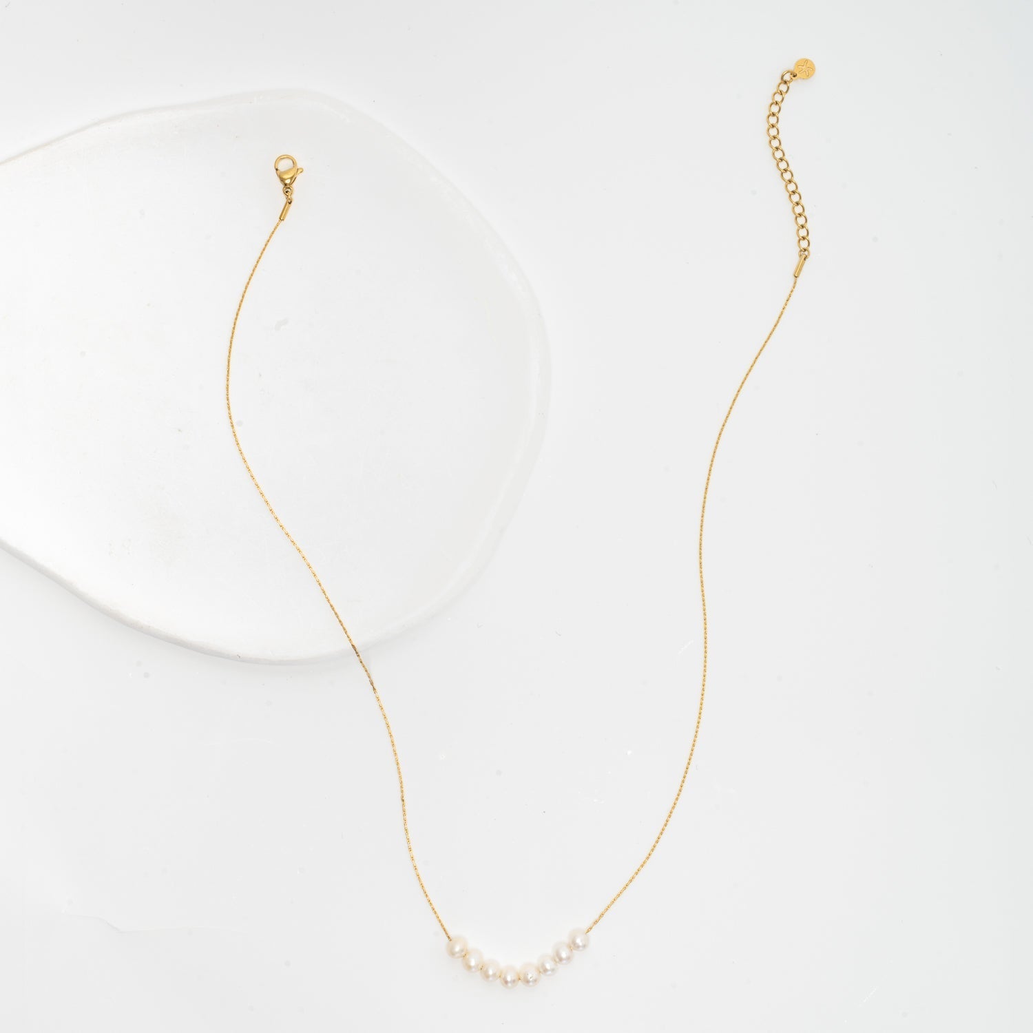 Whether giving one as a gift or treating yourself, you’ll love the everyday wearability and impact of the survivor-created Harmony Pearl Necklace! Showcases five iridescent baroque pearls on a timeless adjustable 14k gold-plated chain. Shine radiantly in uniquely shaped pearls that symbolize strength, resilience, and one-of-a-kind beauty. With each purchase of the Harmony Pearl Cluster Necklace, you help create safe and dignified work for women experiencing freedom at Starfish Project so they, too, can shine! Box size and color may vary. Materials: 14k gold plated stainless steel and freshwater pearl necklace Hypoallergenic; lead and cadmium free with nickel content less than 100 ppm. Size: 15.5-18 inches