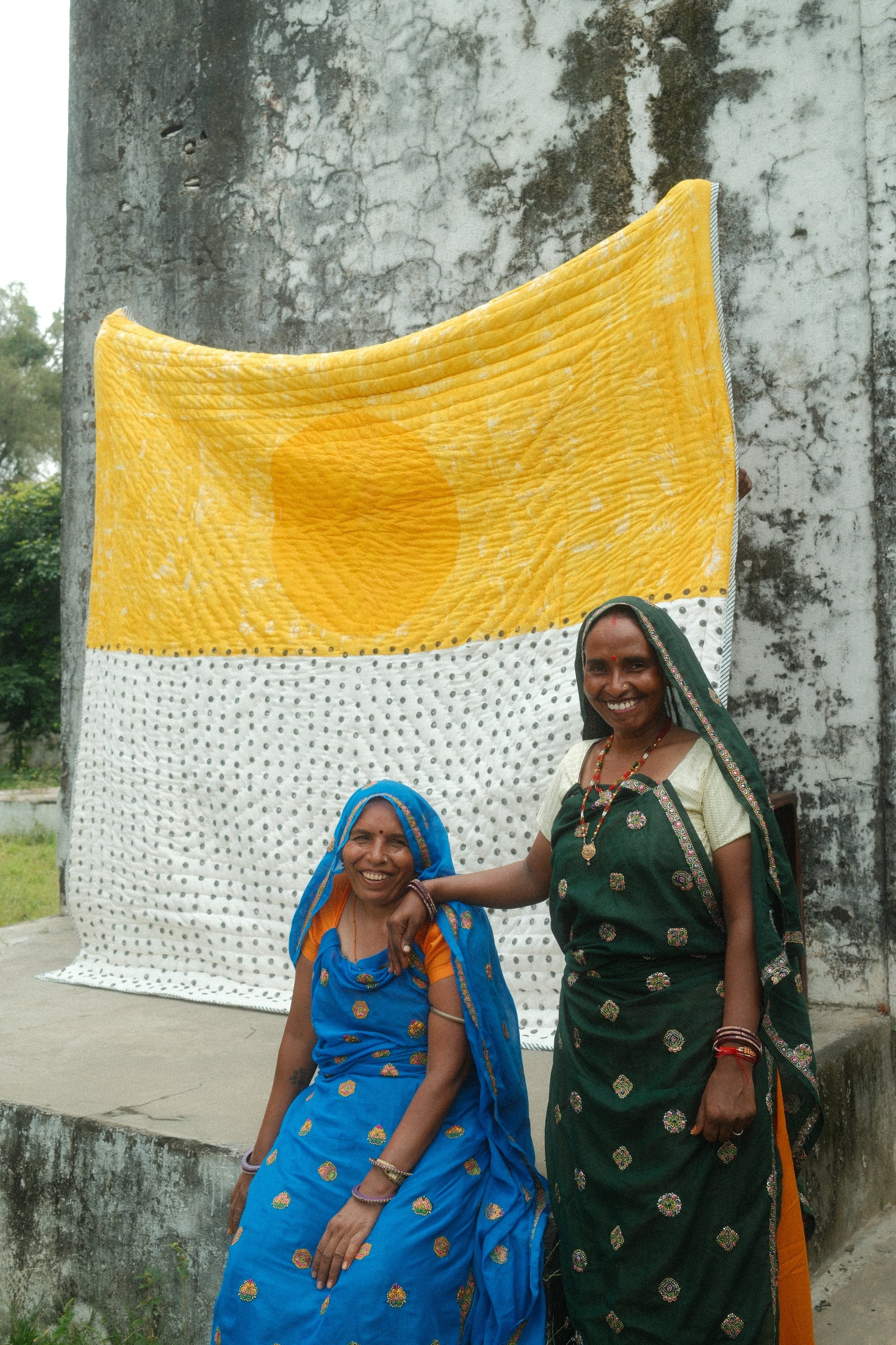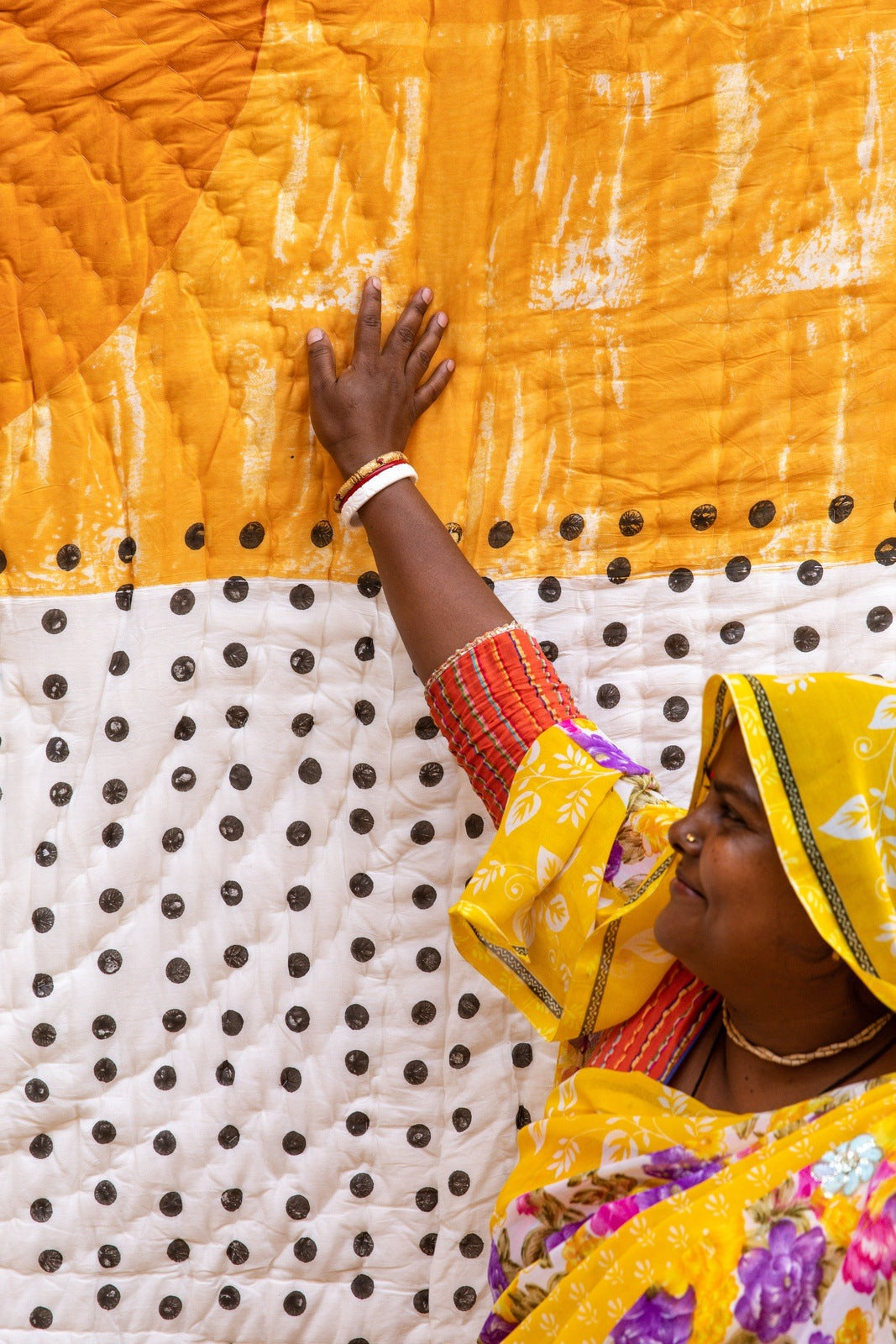 Each quilt is handmade, requiring attention from 4 different artisans, including wood carvers, block printers, quiltmakers, and dye specialists. The design is hand-pressed onto each quilt using hand-carved wooden blocks dipped in dyes. The printed cotton shells are brought to the homes of quiltmakers, who stuff and stitch the quilts by hand, creating the final product. Our quilts are made in small batches. Due to the handcrafted nature of this item, expect slight variations in the appearance of each unique piece. - 100% cotton voile exterior - 100% cotton stuffing - Made in India - Ships from California - Queen size: 96″ x 96″ - King size: 108″ x 108″