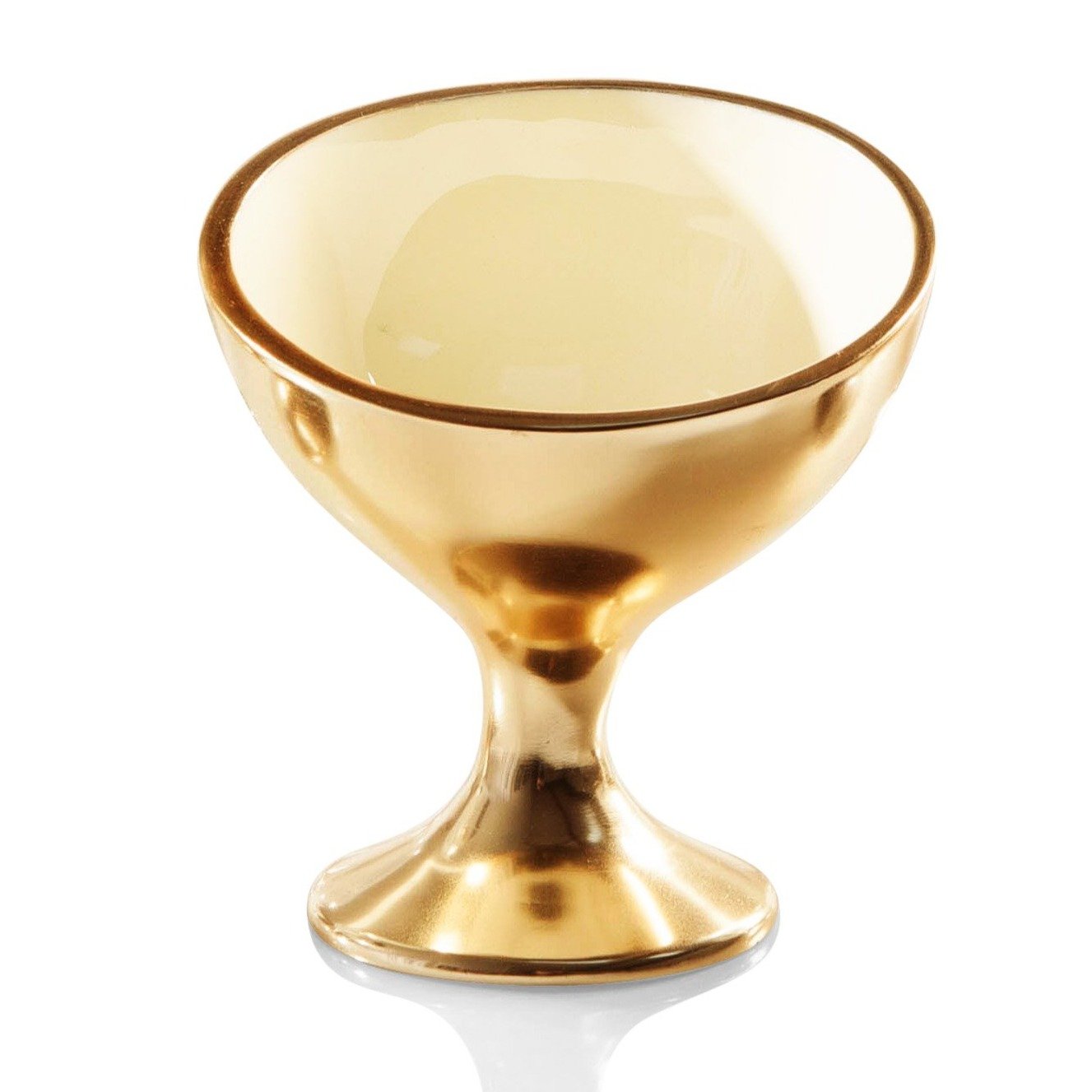 Serving bowls that match the charm and whimsy of our all time best seller pint ice cream holder. Available in a variety of colored enamel and polished finishes, they are adorable for serving olives, nuts and dips too. Each of our creations is designed in our San Francisco studio. Master craftsmen using centuries old technique of sand casting create the original mould and skilled artisans hand create every piece, with pride, in our family owned factory. Details Size: 4.5" H x 4" W Finish: Silver, Gold. Assorted Color Enamels Material : Aluminum, Enamel Use and Care Given its handmade and hand-finished nature, variations in the piece are to be expected and celebrated. No two pieces are exactly alike. Food Safe Hand wash with mild soap, water, and towel dry. Do not use abrasives or chemicals to clean as the metal may scratch and discolor. Not dishwasher safe