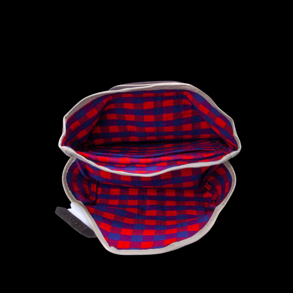 Designed after the likeness of our Original Shell Bag, this bag is hand-stitched with high-quality leather and canvas and lined with the iconic Maasai Shuka. This spacious, yet light-weight bag will soon become essential to your every day and travel or camping go to! Backpack measures approx. 16 inches wide by 21 inches tall with adjustable straps _________________________ Kilele Gear is a non-profit on mission to create life-transforming employment in our local community + beyond. We employ a team of leather artisans in Nairobi, Kenya to make our goods. “Kilele” translates to “peak” or “summit” in Swahili, and we strive to offer peak quality goods for you to enjoy. Every product purchased starts a ripple effect of positive impact. With your purchase, you become a part of this story!