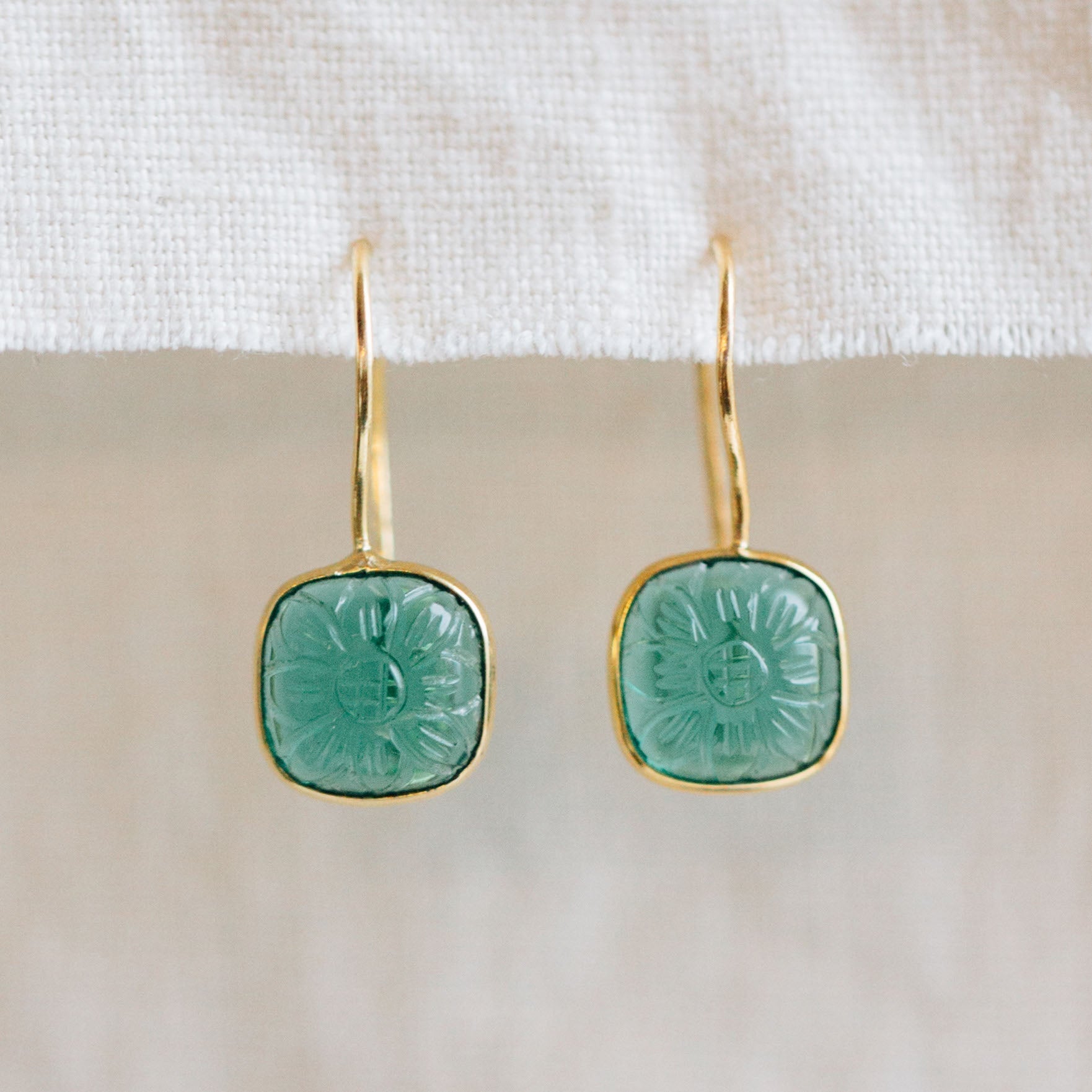 Add a pop of color to your jewelry collection with the Lalita Blue Daisy Dangle Earrings! Made with translucent apatite stone, these teal beauties feature an embossed daisy design and are completed with a French hook for easy wear. Perfect for any occasion, these earrings will make you stand out in a playful and unique way. (Perfect for flower lovers!)