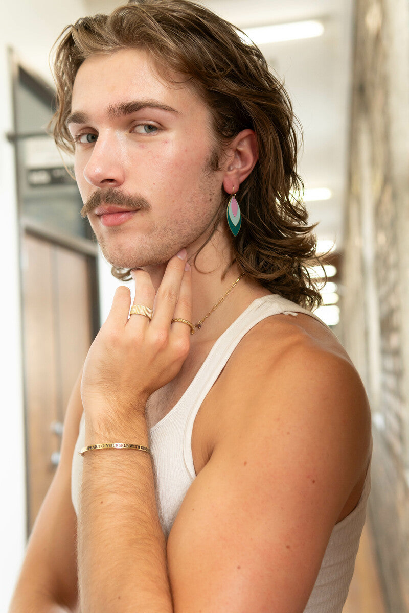 Made from brass-plated recycled metal. Nickel-free. Measures 2. 5" long.