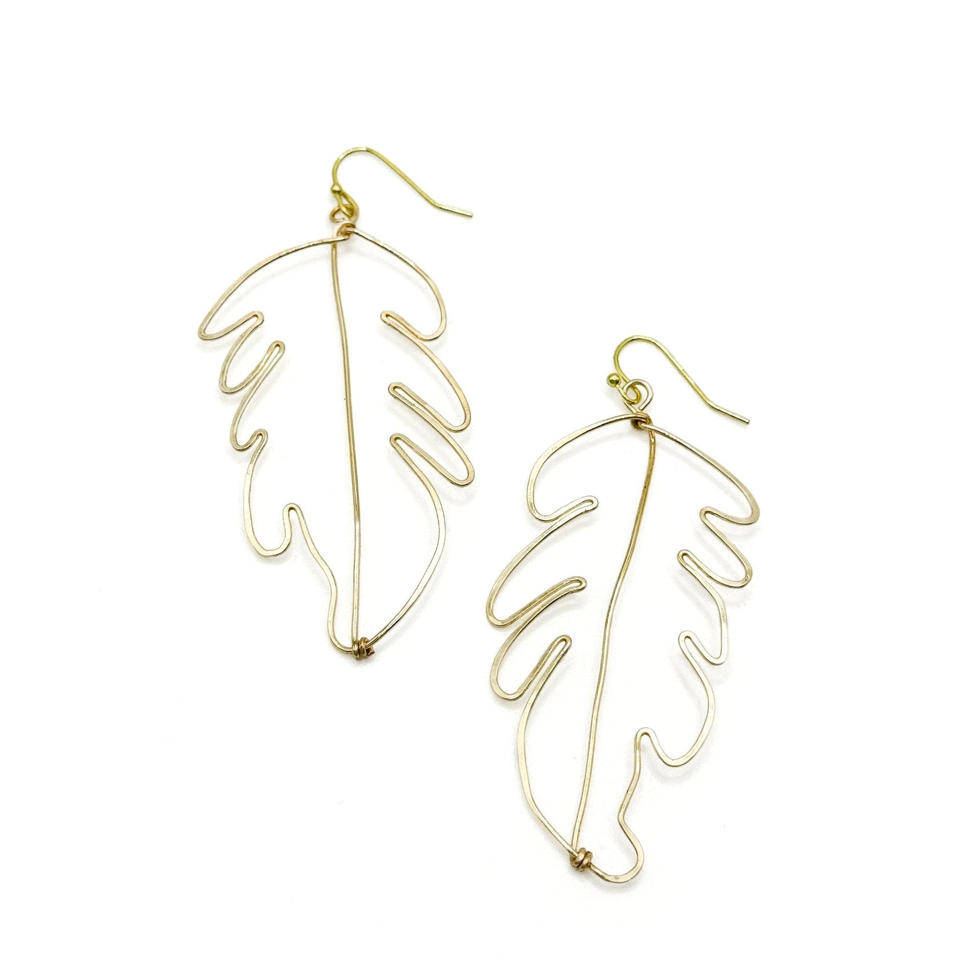 Every feather is unique, just like the artisans who handmade it for us. Gold plated wire is formed into a feather shape and then hammered to create a beautiful shiny texture that will catch the light. 3 inches total length.