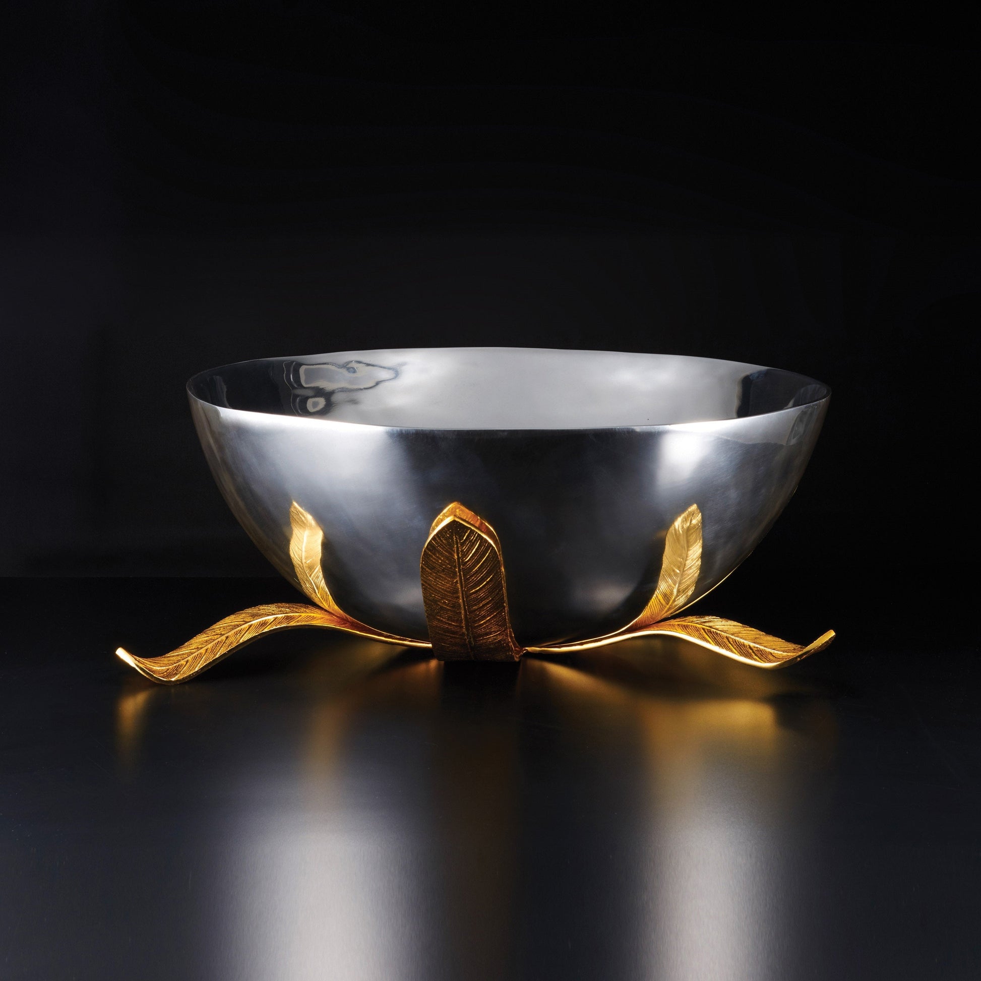 "Majestic feathers uplift this vessel. Pure, simple, noble." Limited Edition - Only 300 made Each of our creations is designed in our San Francisco studio. Master craftsmen using centuries old technique of sand casting create the original mould and skilled artisans hand create every piece, with pride, in our family owned factory. Details Dimensions : 25"L;9.5"H ;H25"W Finish : Gold, Silver Material : Aluminum Use and Care Given its handmade and hand-finished nature, variations in the piece are to be expected and celebrated. No two pieces are exactly alike. Hand wash with mild soap, water, and towel dry. Do not use abrasives or chemicals to clean the metal as it may scratch and discolor. Not dishwasher safe. Will not tarnish
