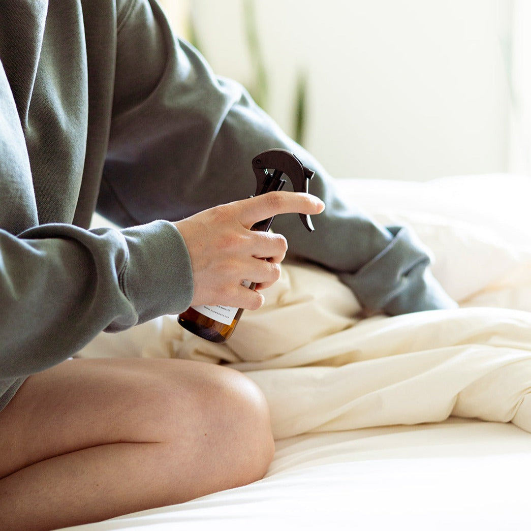 Spritz our all-natural linen spray anywhere in need of a little pick-me-up! Our custom blend of Fir, Pine, and Patchouli Essential Oil - designed to evoke the meditative experience of forest bathing - is calming and grounding, with bright notes of citrus and a woody, resinous undertone.