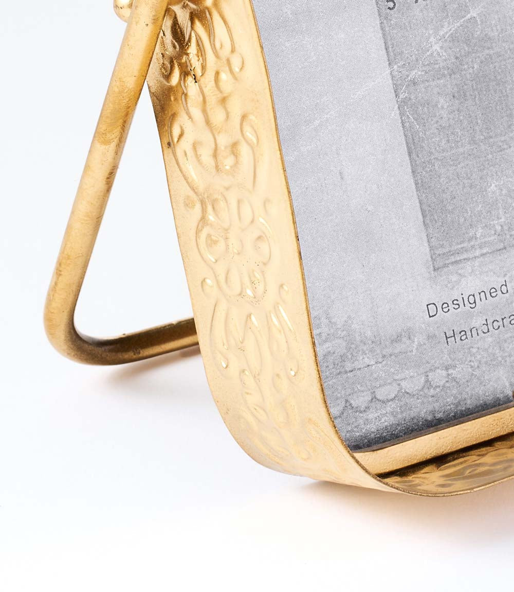 Add a touch of elegance to your space with the Loha 4x6 Rounded Picture Frame. Adorned with intricate embossed floral designs and a stunning gold-tone finish, this frame beautifully highlights your treasured memories. Handcrafted from durable iron, it’s perfect for showcasing your favorite photos on a tabletop. Celebrate your style while supporting fair trade practices.