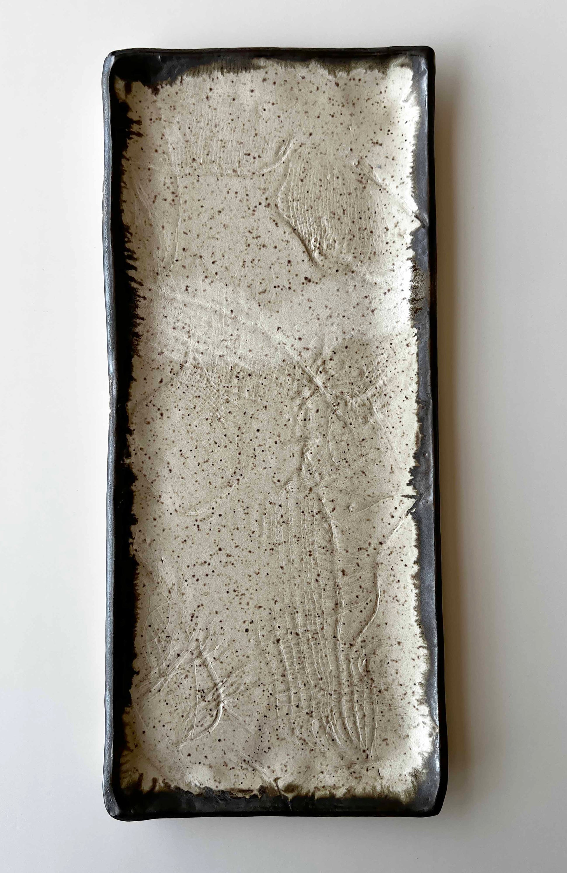 The Luna Collection is meticulously crafted from stoneware clay and adorned with a rich bronze accent at the lip. Each piece is carefully hand built and stamped before being glazed, resulting in a beautifully subtle woven texture. Approximate measurements: 14-15 inches long x 6.24-7 inches wide x .75 inches tall. Microwave and dishwasher safe however hand washing prolongs the life of your handmade wares. *All of my products are made by hand and will vary. Each glaze firing varies as well. Please keep this and my refund policy in mind when you place your order. Thank you.