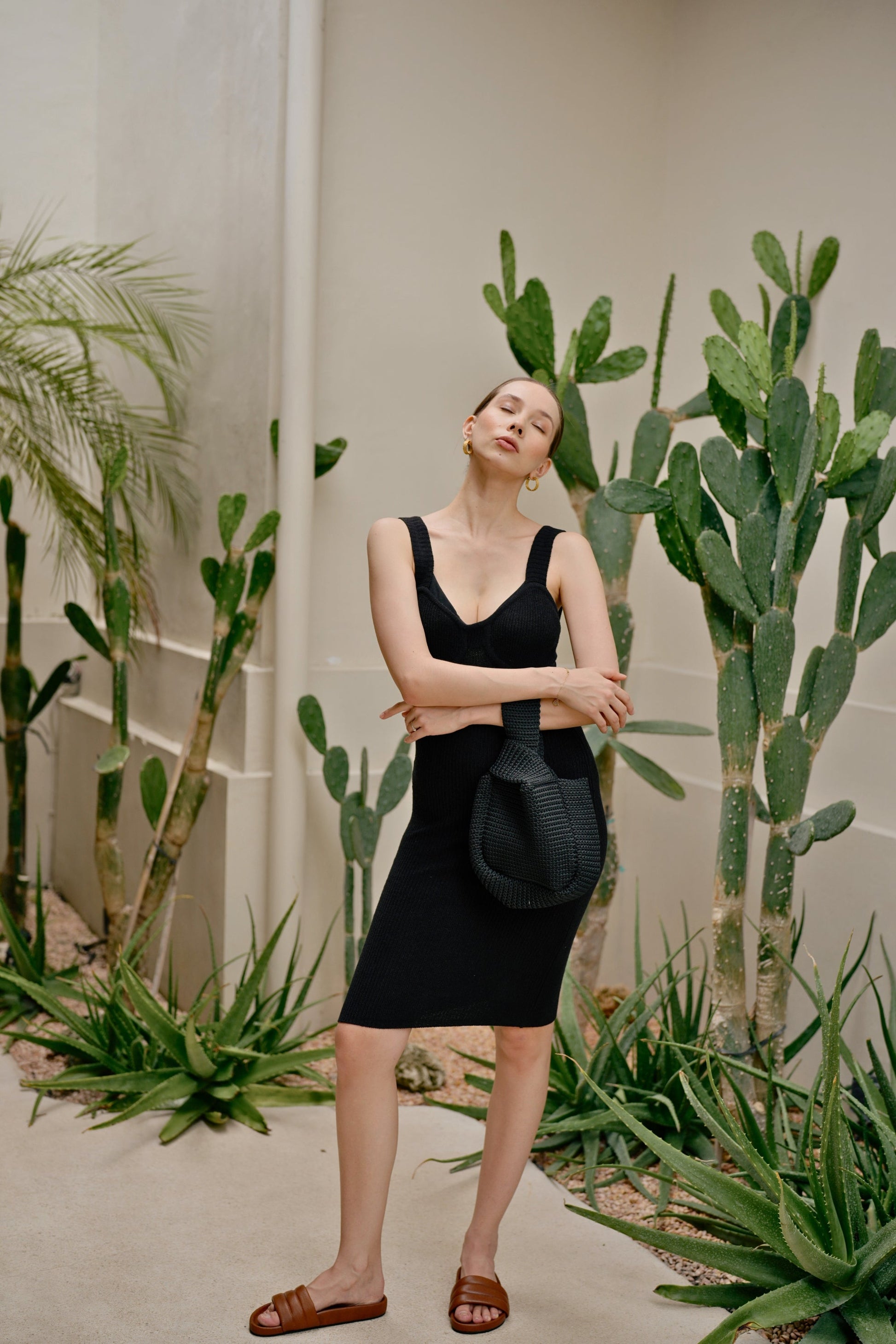 This stand-out clutch featured in a handheld style and stunning knit fabrication with double side handles to carry all your essentials need. Color: Black. Dimension: 7.5"W x 11.5"H x 3.5"D. Handle drop 5.5". 19 cm W x 30 cm H x 8.5 cm D. Handle drop 14 cm. Material: Acrylic yarn. Unlined. Handmade with love. Shipping & Returns: Return accepted for store credit only. Please see our Shipping & Returns page for more details.