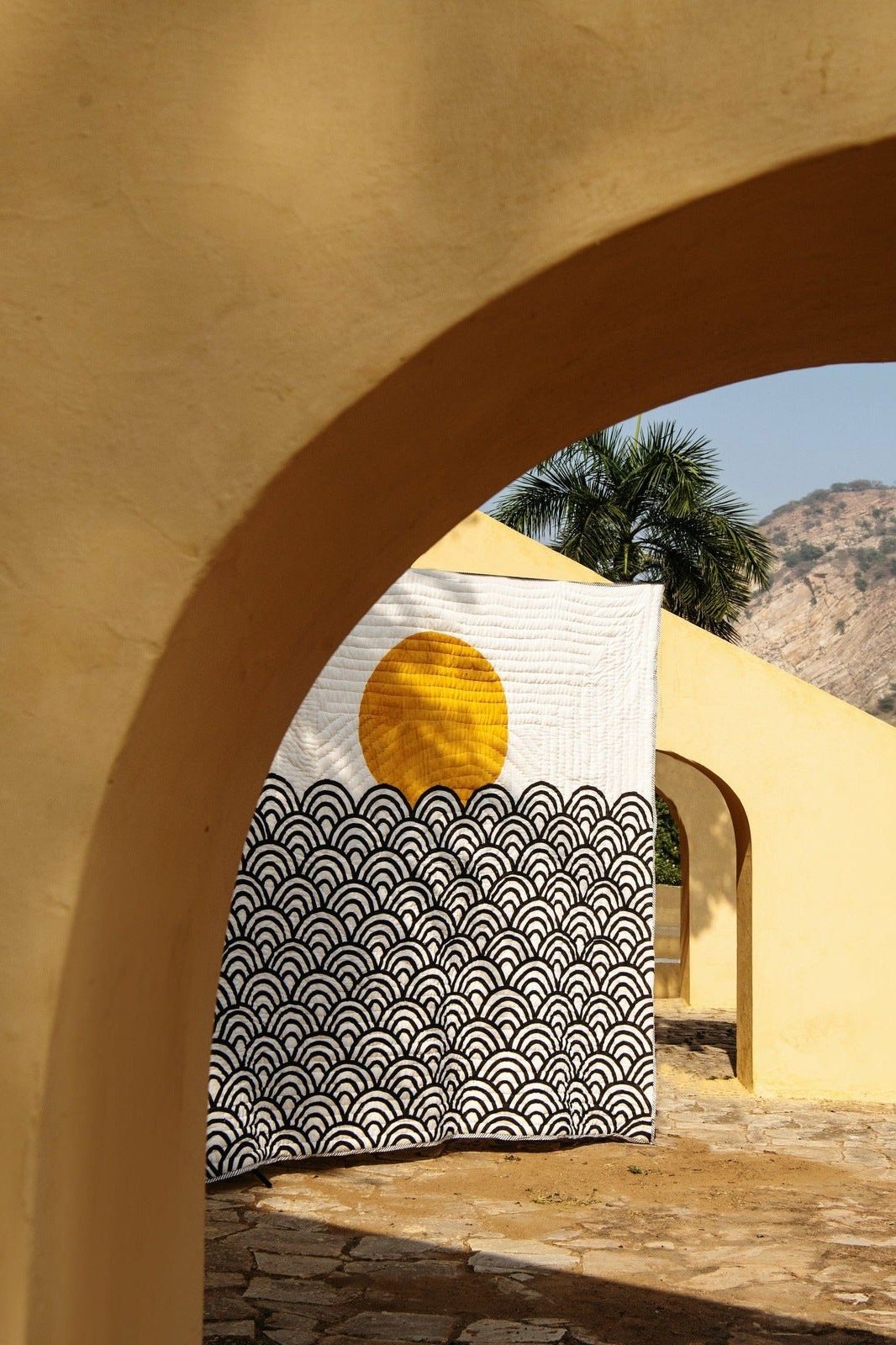 Each quilt is handmade, requiring attention from 4 different artisans, including wood carvers, block printers, quiltmakers, and dye specialists. The design is hand-pressed onto each quilt using hand-carved wooden blocks dipped in dyes. The printed cotton shells are brought to the homes of quiltmakers, who stuff and stitch the quilts by hand, creating the final product. Our quilts are made in small batches. Due to the handcrafted nature of this item, expect slight variations in the appearance of each unique piece. - 100% cotton voile exterior - 100% cotton stuffing - Made in India - Ships from California - Queen size: 96″ x 96″ - King size: 108″ x 108″