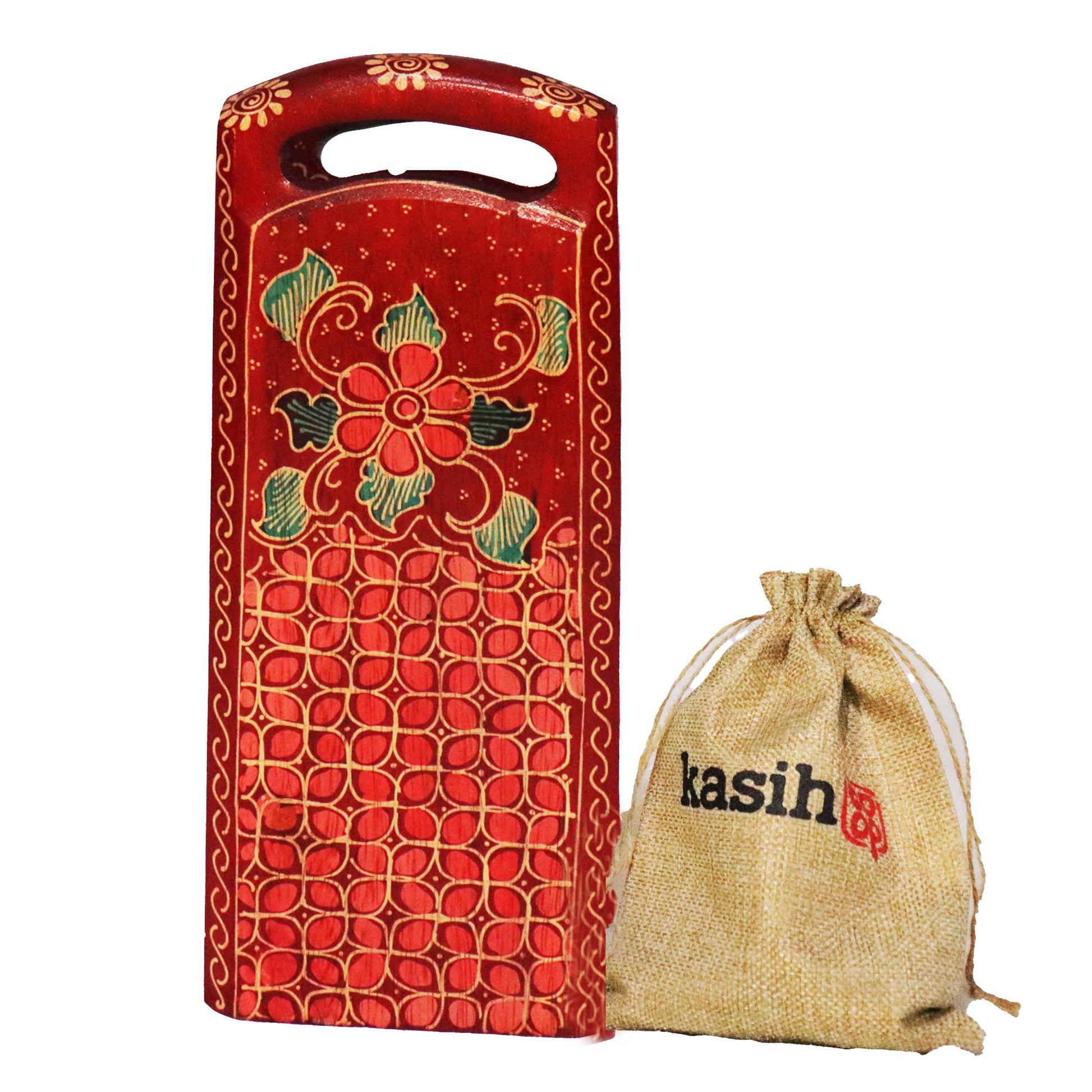 Handmade Albacia wood mancala, dakon, congklak made by our artisans in Indonesia. Sold with wooden beads in our branded Kasih Co-op pouch jute bag along with an instruction on how to play our mancala board game set.