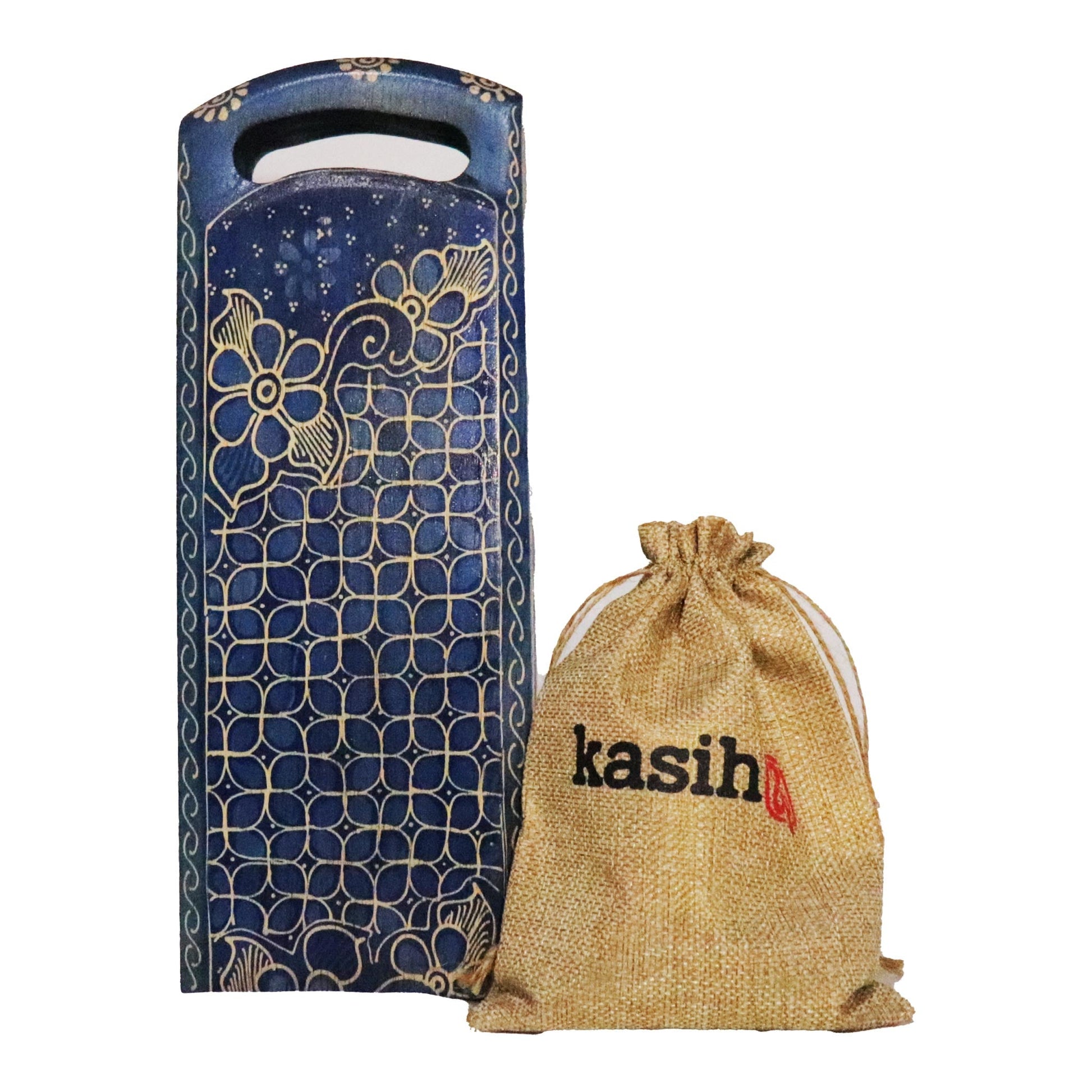 Handmade Albacia wood mancala, dakon, congklak made by our artisans in Indonesia. Sold with wooden beads in our branded Kasih Co-op pouch jute bag along with an instruction on how to play our mancala board game set.