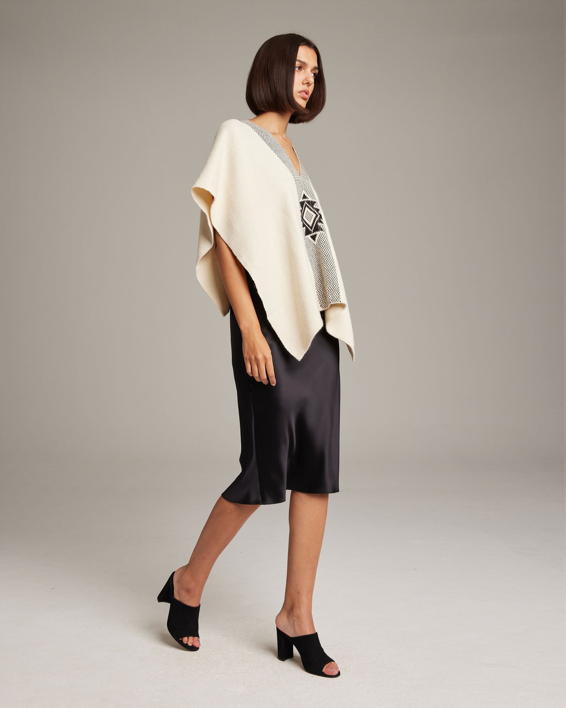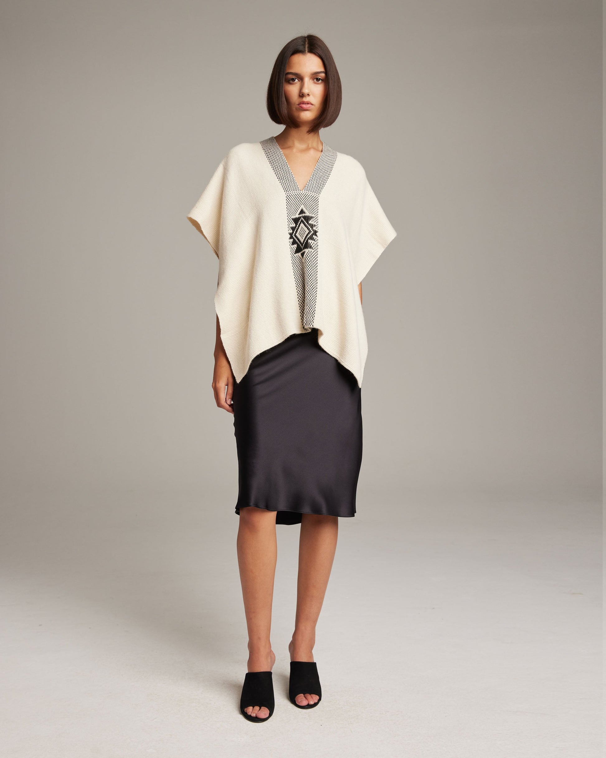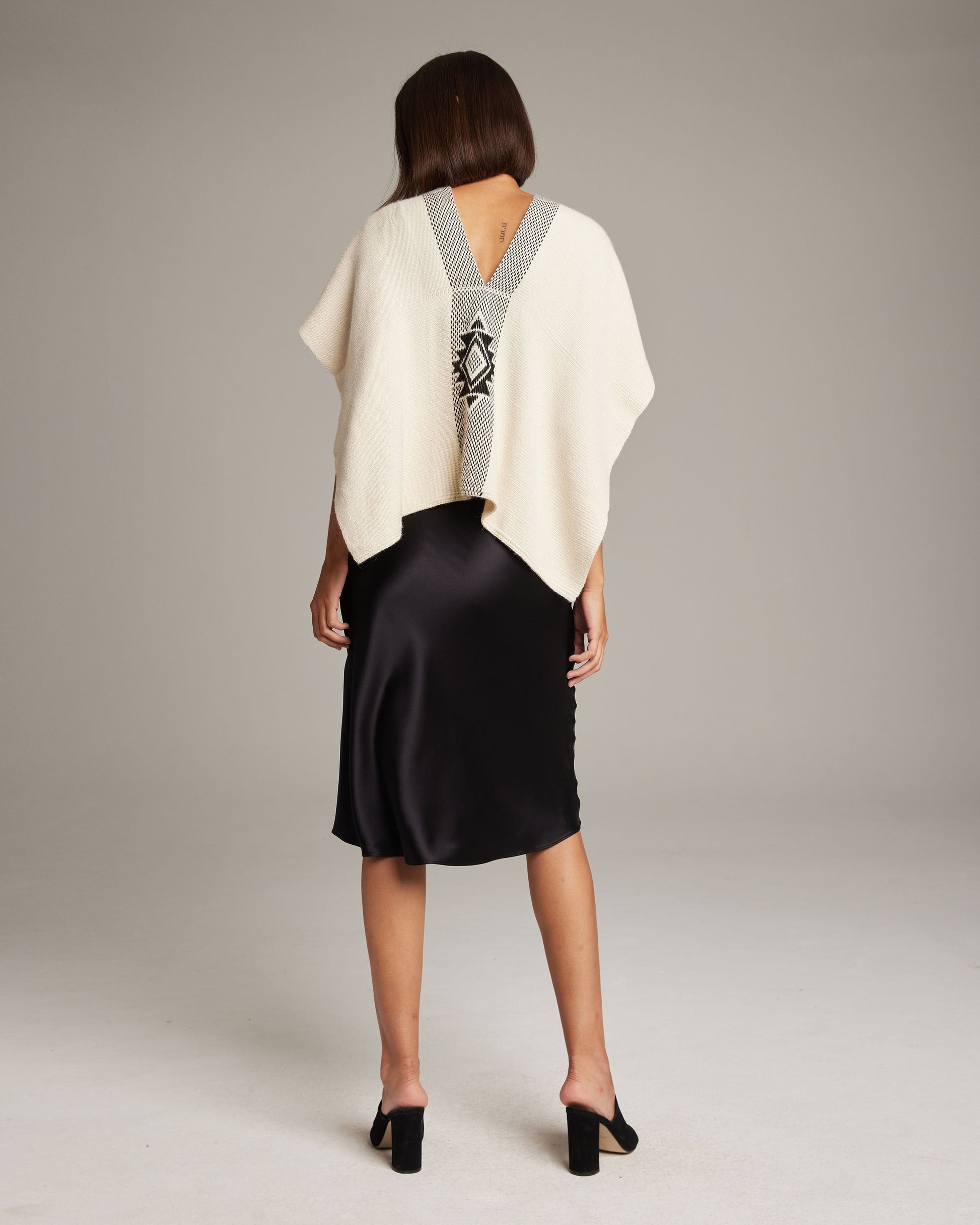 This hand-loomed, merino short manta, or poncho, showcases the beautiful Estrella pattern. 100% Organic Cotton Size OS Handmade in Southern Chile by Mapuche Artisans Product Care: Dry Clean Only or Delicate Hand Wash
