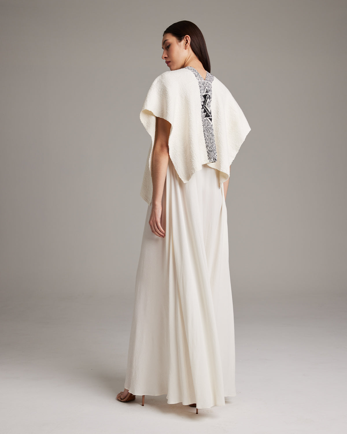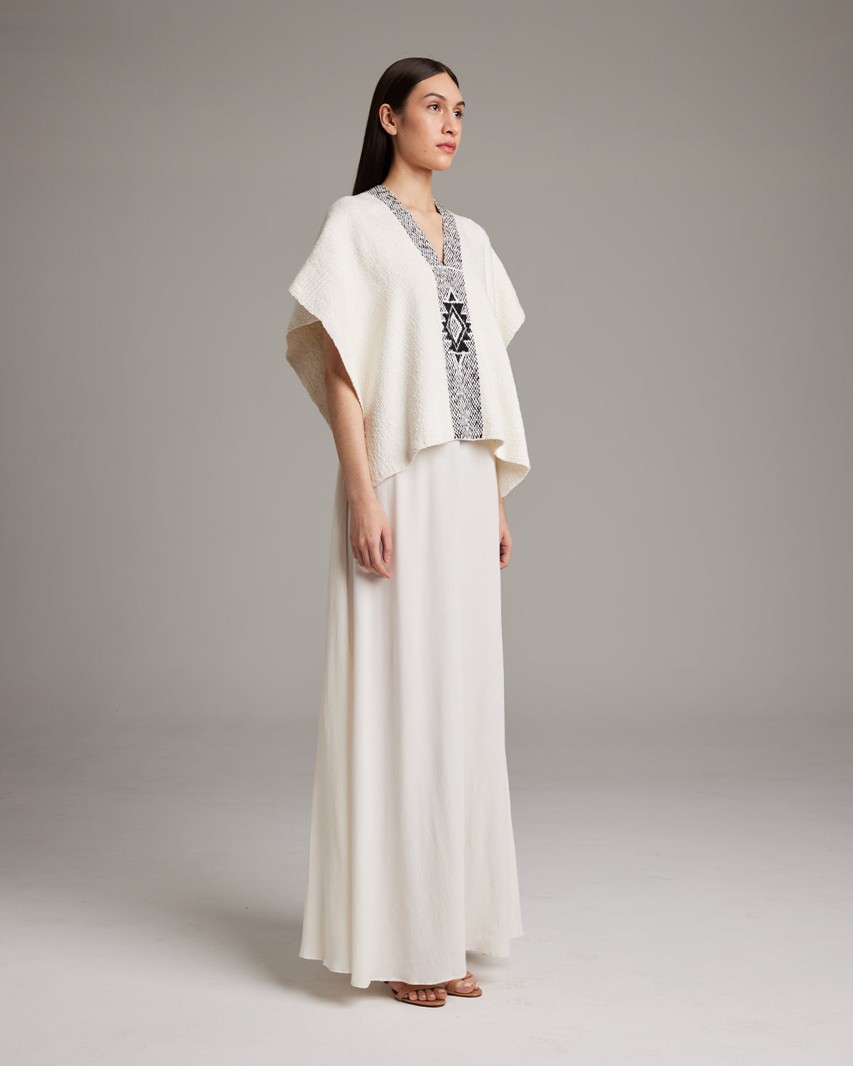 Hand-loomed short manta, or poncho, features the Estrella symbol which represents divine femininity. 100% Pima Cotton Size OS Handmade in Southern Chile by Mapuche Artisans Product Care: Dry Clean or Delicate Hand Wash