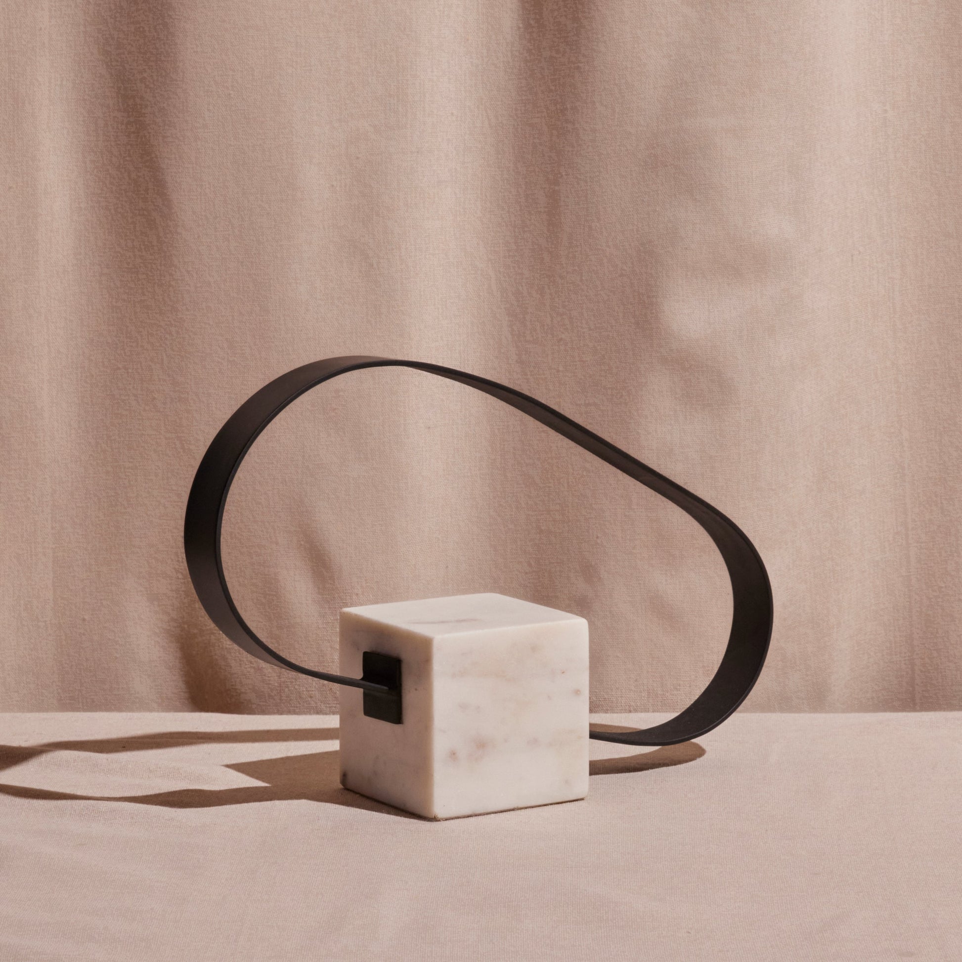 Modern Loop Table Sculpture, Steel and White Marble Base, Handcrafted in India, Fair Trade Certified.