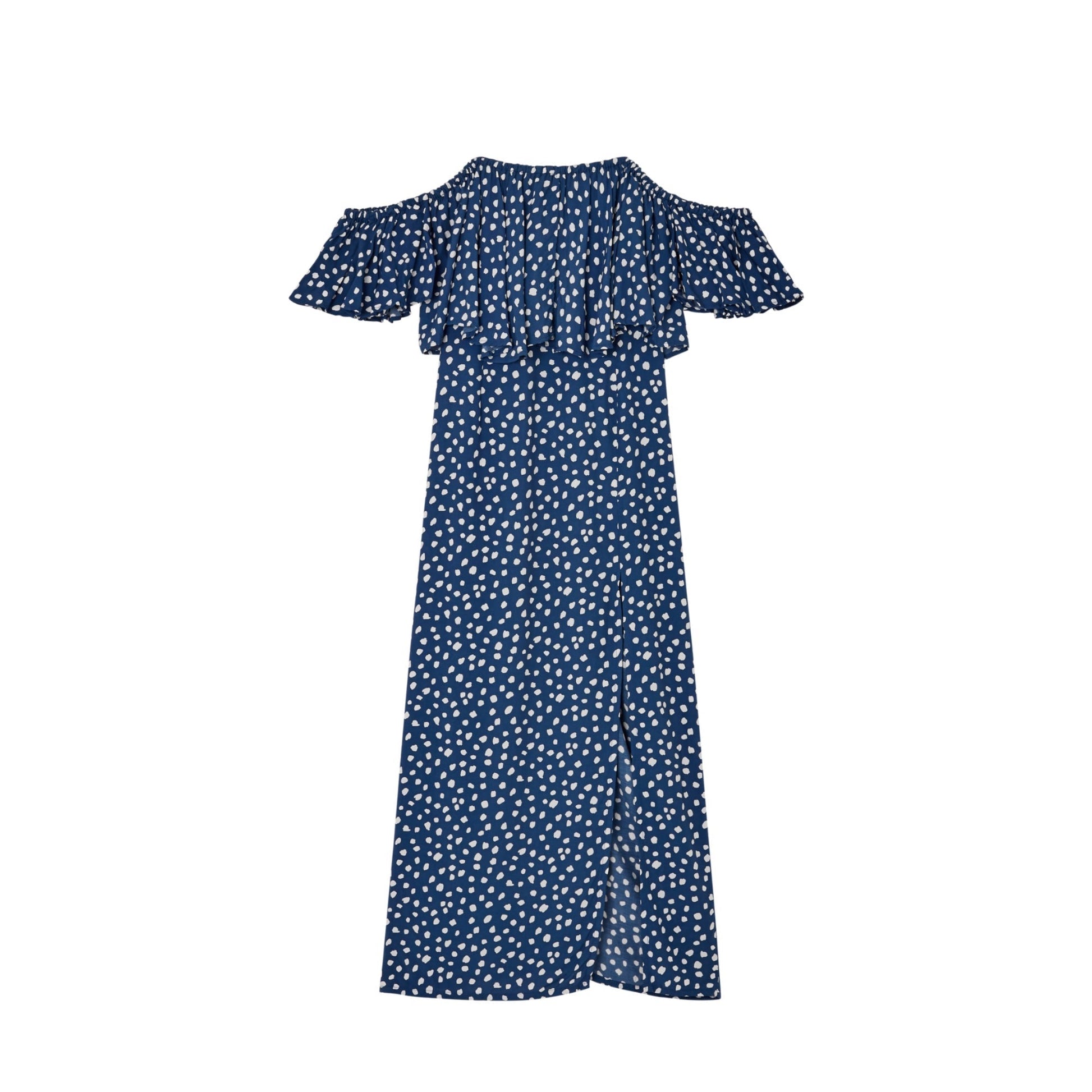 This head-turning split thigh dress is featured in a forever femme, polka dot -printed design with versatile off-the-shoulder neckline and off-the-shoulder short sleeves. We created garments that are meant to last season after season. Every piece is created by need which allows our talented artisans to take their time to focus on every detail. Every tailor-quality garment is specifically made specially for you. Every stitch is meant to keep our artisan craftsmanship culture alive. Material: 100% Rayon.