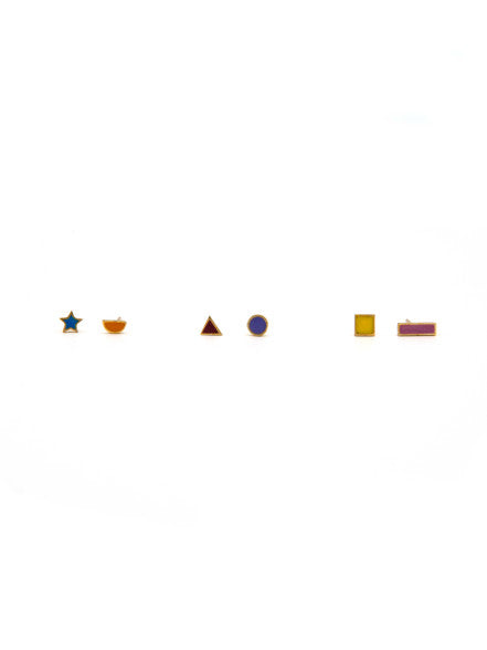 Keep it simple but super fun with mismatched tiny studs. Whether you have 1, 2, or more piercings, the combinations are endless. If you love bold or dainty earrings, this ethical colorful shape stud set is the perfect way to add a bit of playfulness to your look.