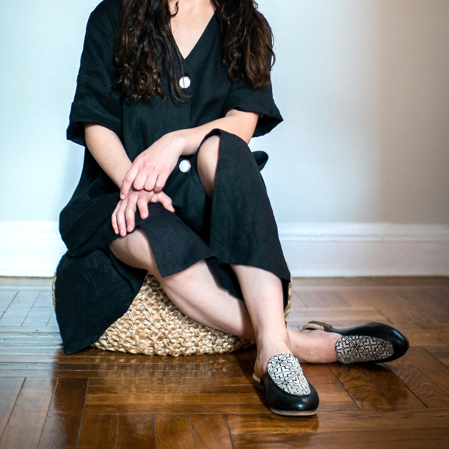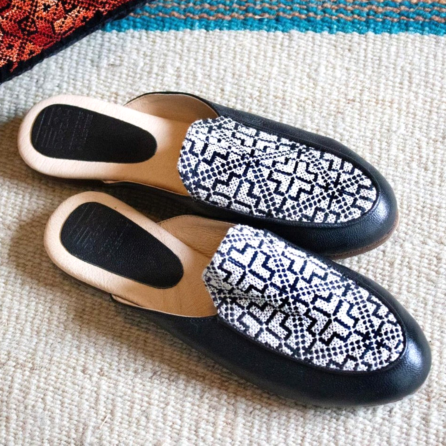 The Nadia Mule is an easy-to-wear shoe that adds a refined and polished quality to any outfit. These versatile slip-ons can be dressed up or paired with jeans to match various styles. The tatreez motif decorating this shoe is called "Eye of Camel.” Our products are hand-crafted by women in the West Bank who have historically suffered from low-income and gender inequality. As an ethical fashion brand, we strive to empower our artisans. Making a change is a team effort — join us! Want to learn how our expertly hand-crafted shoes are made by third generation shoemakers in Al-Khalil (Hebron), Palestine? Check out our blog.