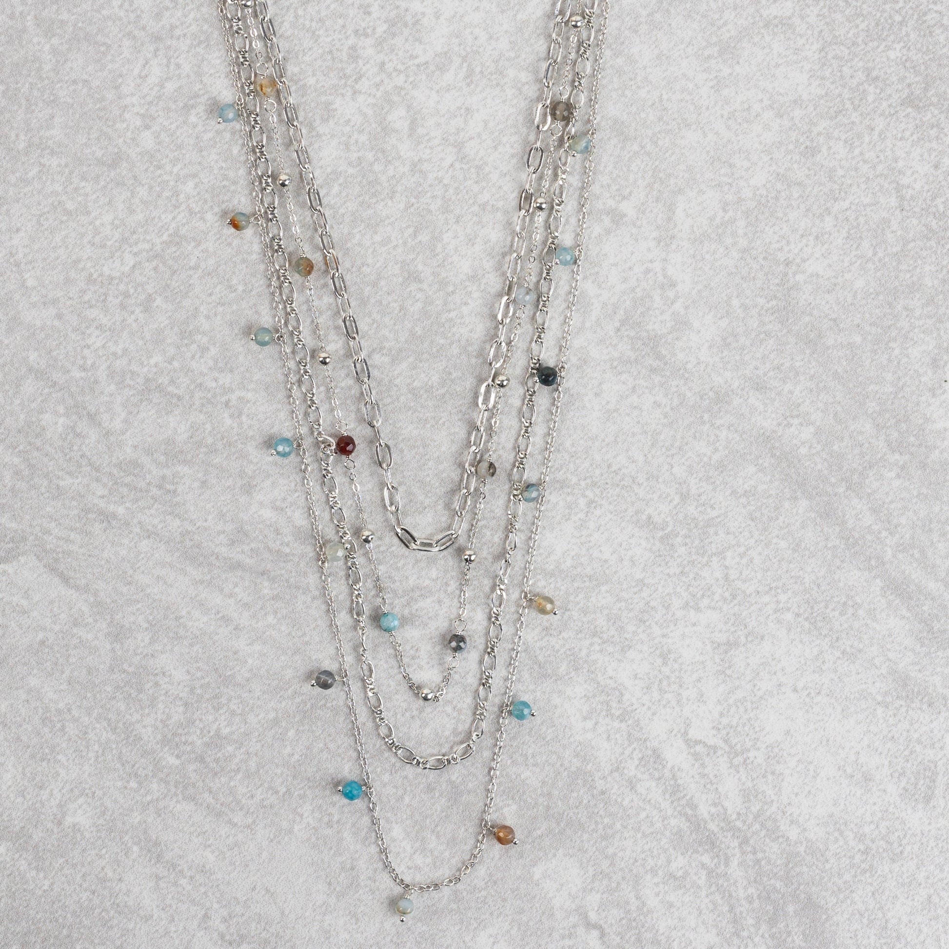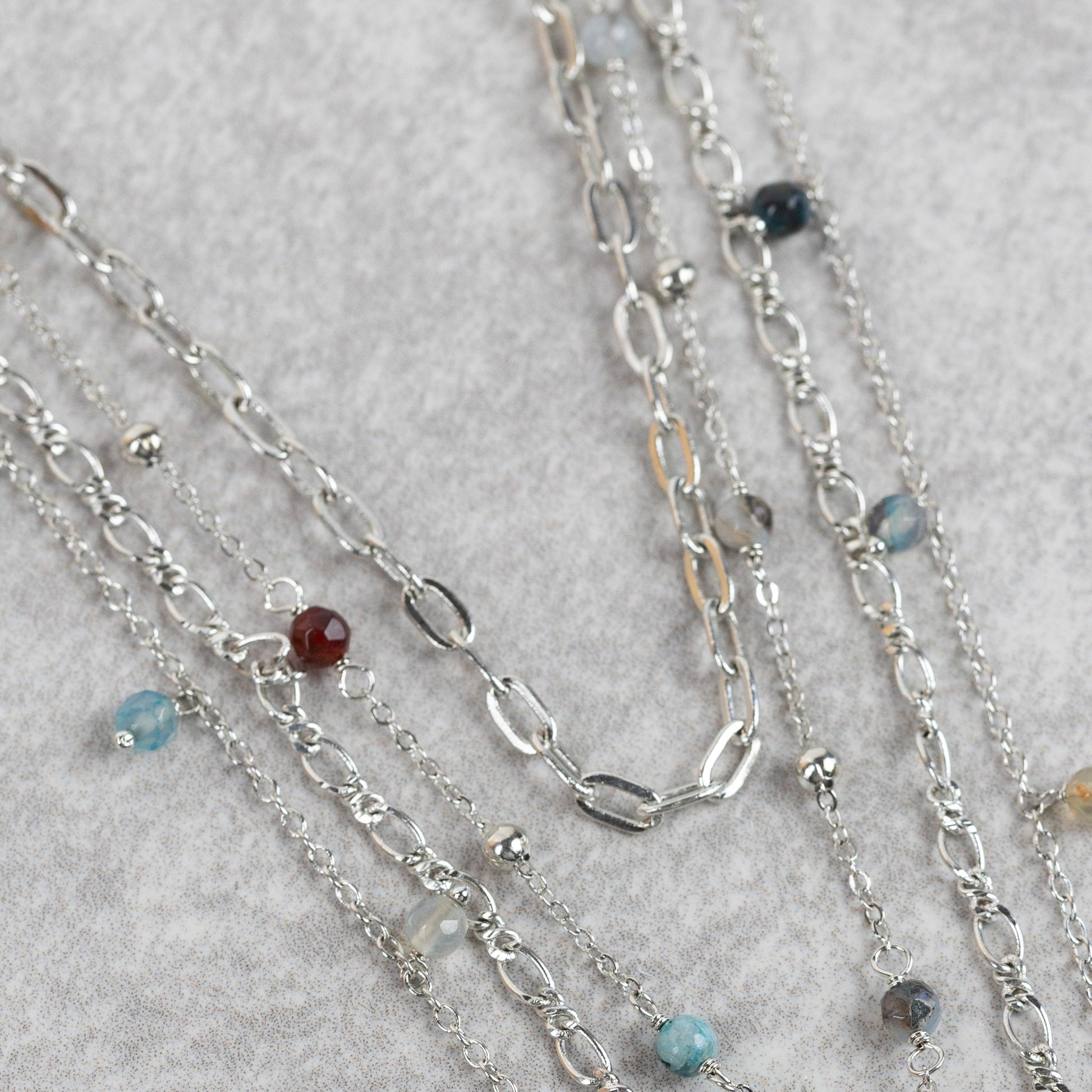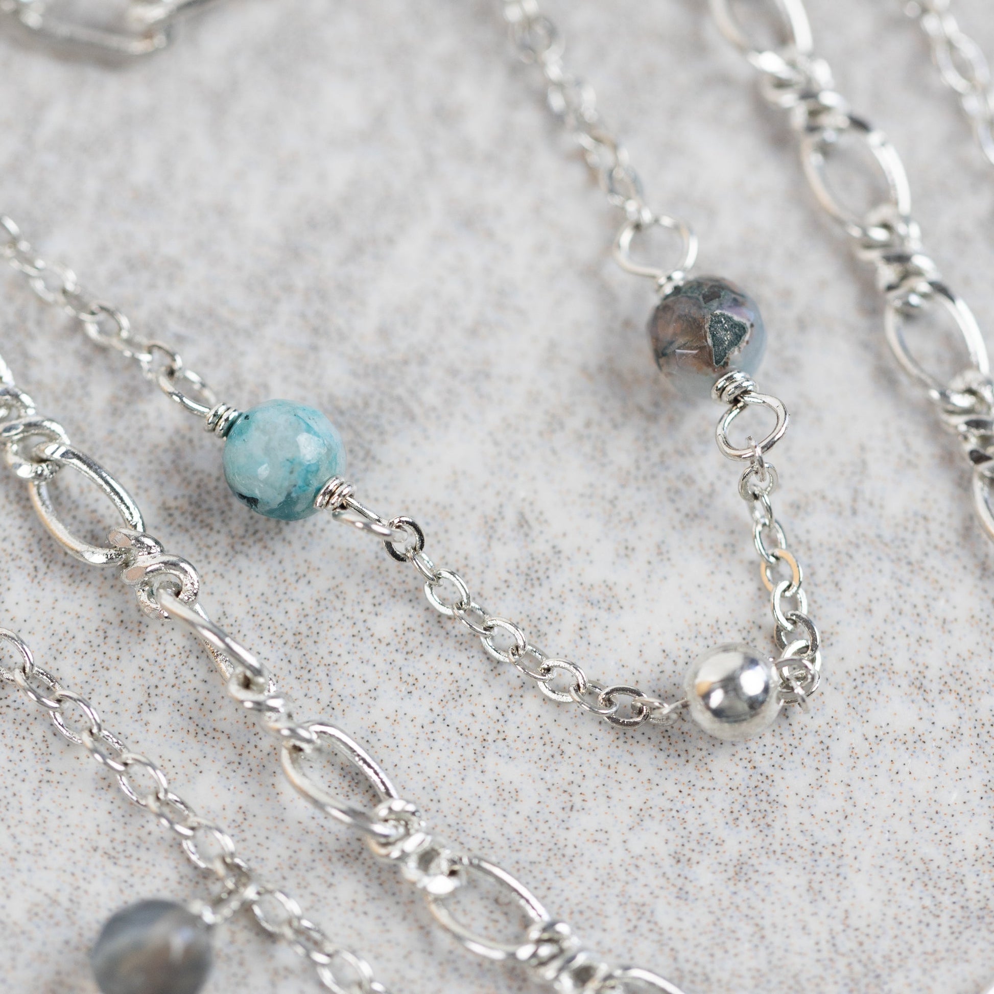 Achieve a trendy layered look effortlessly! The Nanda Layered Beaded Necklace features four different styles of dainty chains in varying lengths, two with small onyx beads. The chains create a lovely cascading effect, and the necklace is adjustable for preference. Intricately handcrafted in India by our fair trade partner Tara Projects, which helps to transform artisans' lives and communities with new opportunities to earn sustainable income.