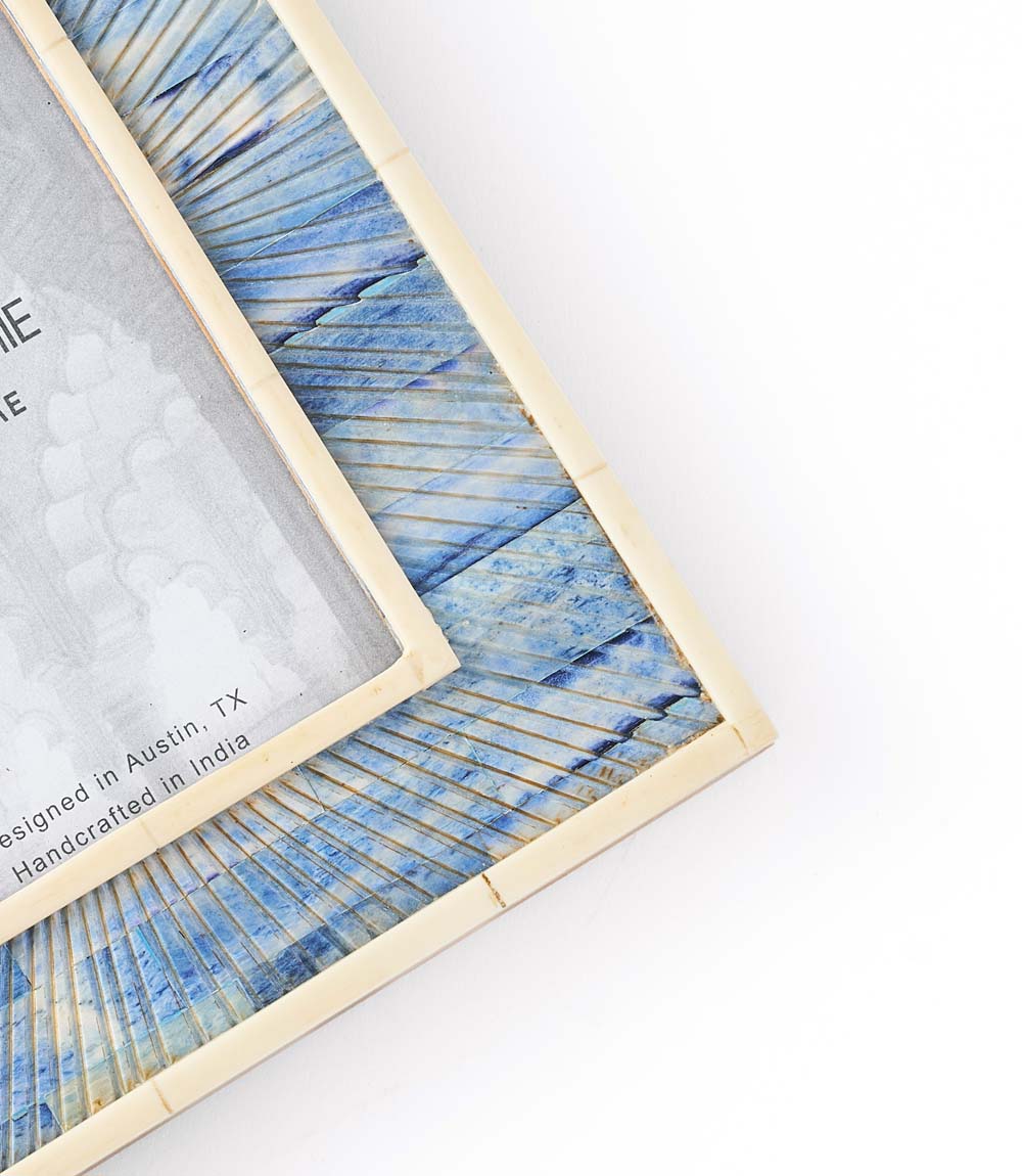 Showcase your cherished memories with the Neela 3x3 Picture Frame, crafted from ethically sourced bone and beautifully dyed in rich shades of blue. Inspired by the coastal beauty of the sea, each frame features unique variations that add character and charm. The picture frame accommodates a 3x3 photo or print, easily accessed with metal swivel tabs and removable back.