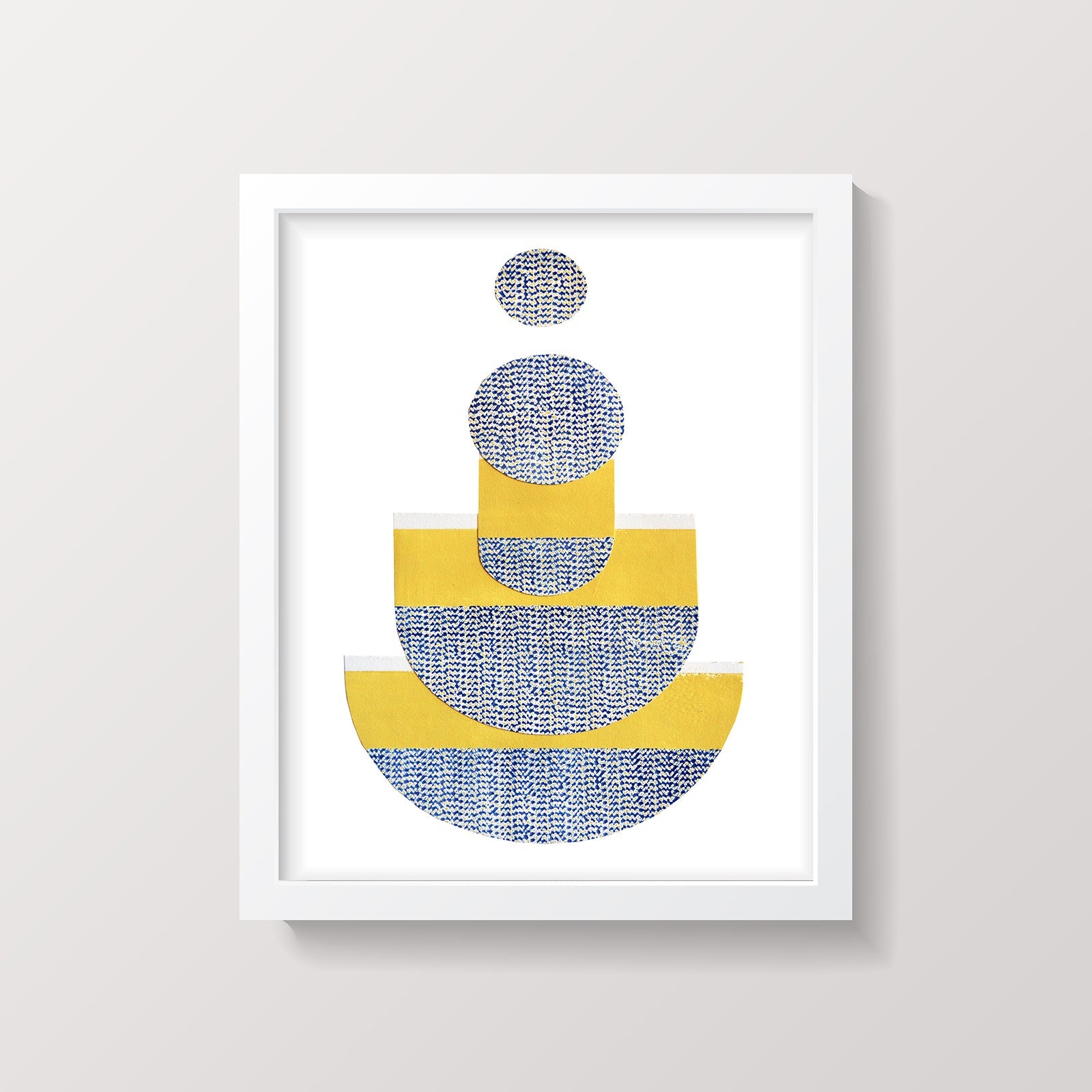 Abstract one-of-a-kind monotype print inspired by the contemporary art movement. This print comes framed in a white wooden frame that is 3/4" wide.