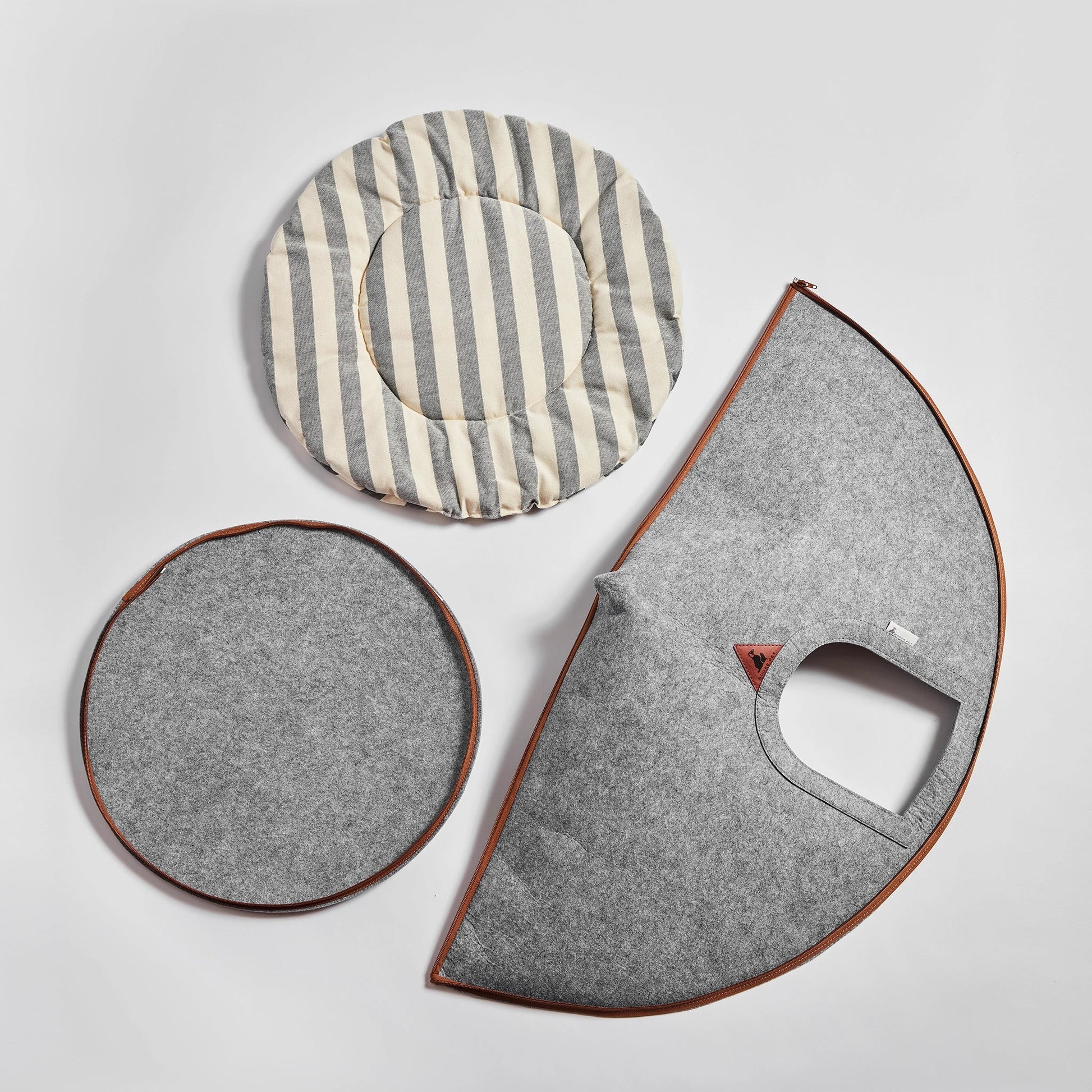 An iconic Nooee Pet classic - this lightweight, modern pet home is a wonderful and cozy hideaway. Shaped in a cone with an arch opening, it includes an extra-comfy cushion that is removable. The zipper construction enables easy assembly and access throughout for cleaning, including the interior. This home can be rolled up and placed into the provided convenient bag, allowing you to carry a familiar spot for your pet when traveling. Its simple and sophisticated design blends easily with your home decor. Dimensions: 35"H x 32"L x 32"D Fits pets up to 35 lbs Recommend this size for French Bulldog, Cavalier King Charles Spaniel, Cocker Spaniel, Shetland Sheepdog, and similar-sized breeds, but please ensure to measure your pup's size carefully before making a purchase. Cushion is included and it is machine washable. Cave: Polyester / Cushion: 100% Cotton Designed for easy setup. Need help choosing the right size? View our Sizing Guide