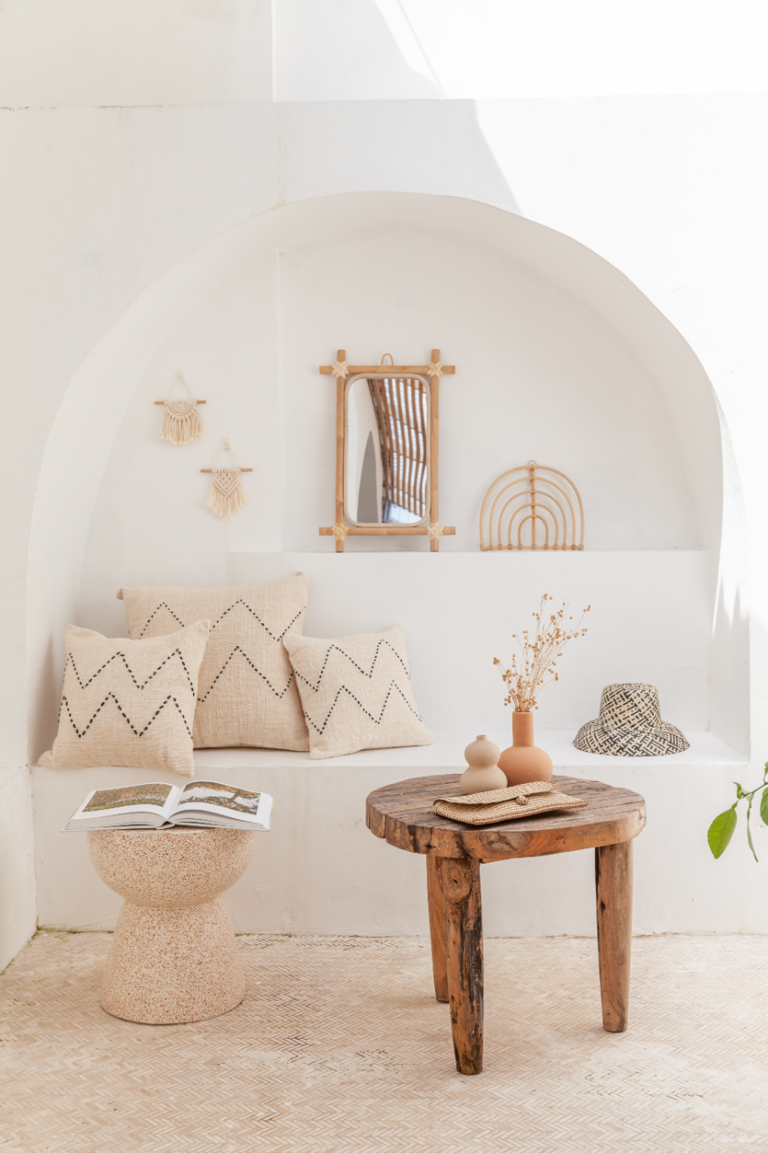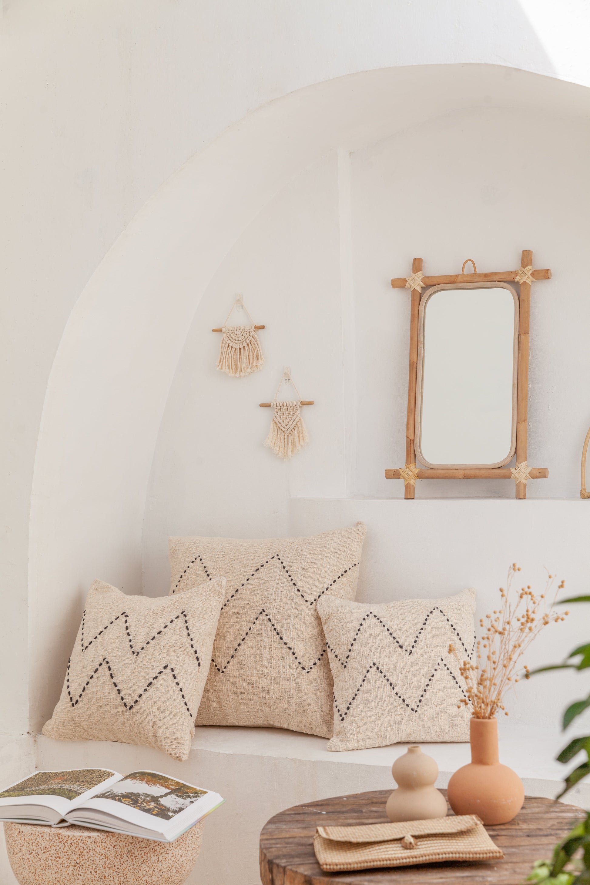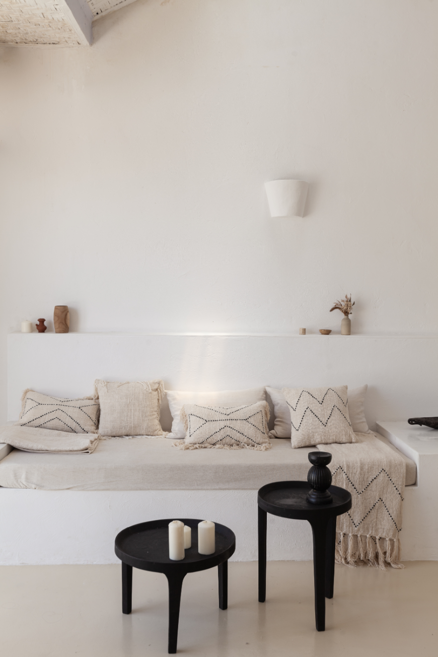 Made from organic hand spun cotton, hand woven and hand stitched with attention to detail. Fill your home with texture and warmth with our Nya throw pillow, featuring a black zig zag pattern, available in three sizes.