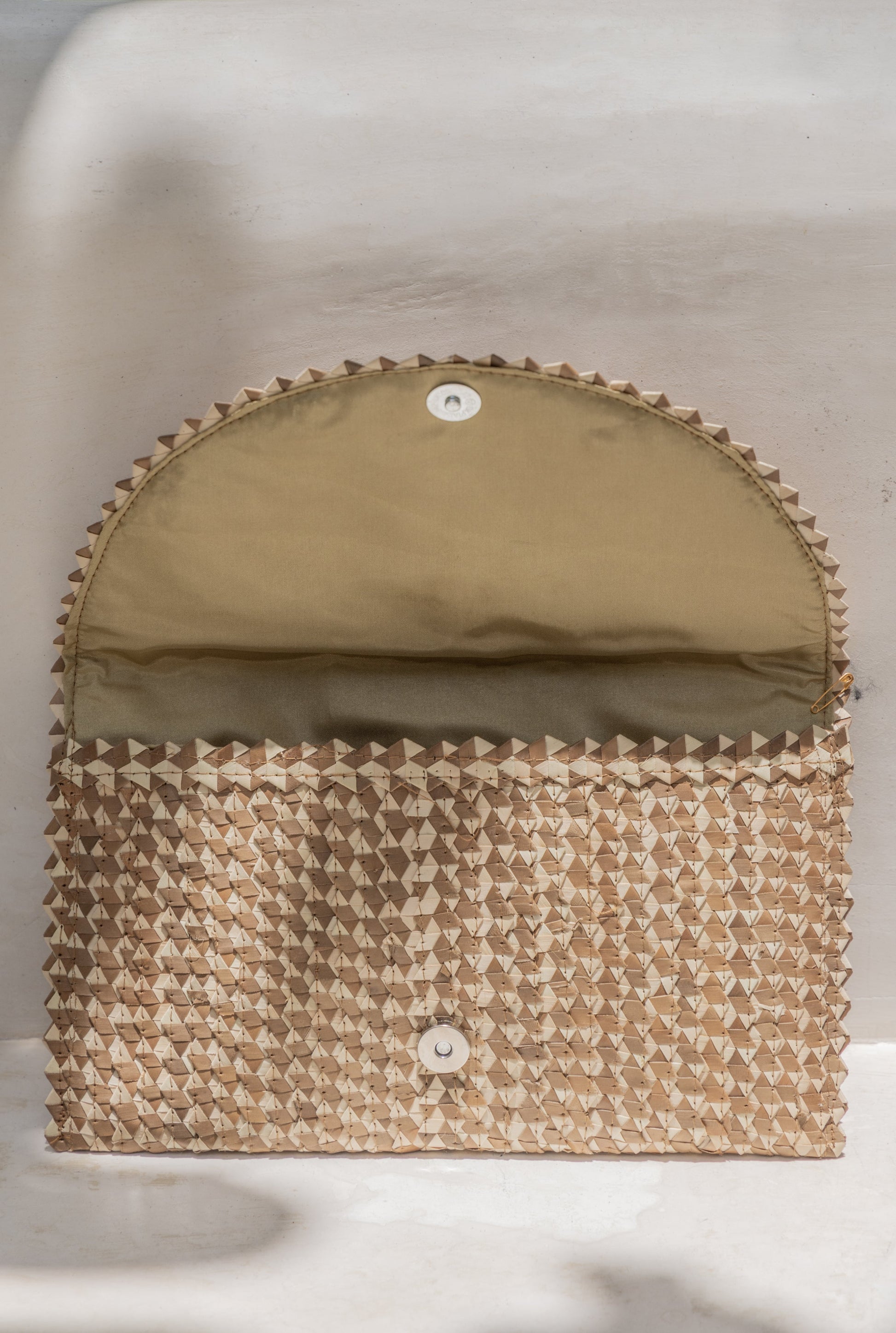 Stylish, sophisticated, and fun, this ombre rattan clutch is the perfect carrier for your daily necessities. The Interior features a soft fabric lining as well as a change pocket. A vintage inspired piece with a modern and playful twist.