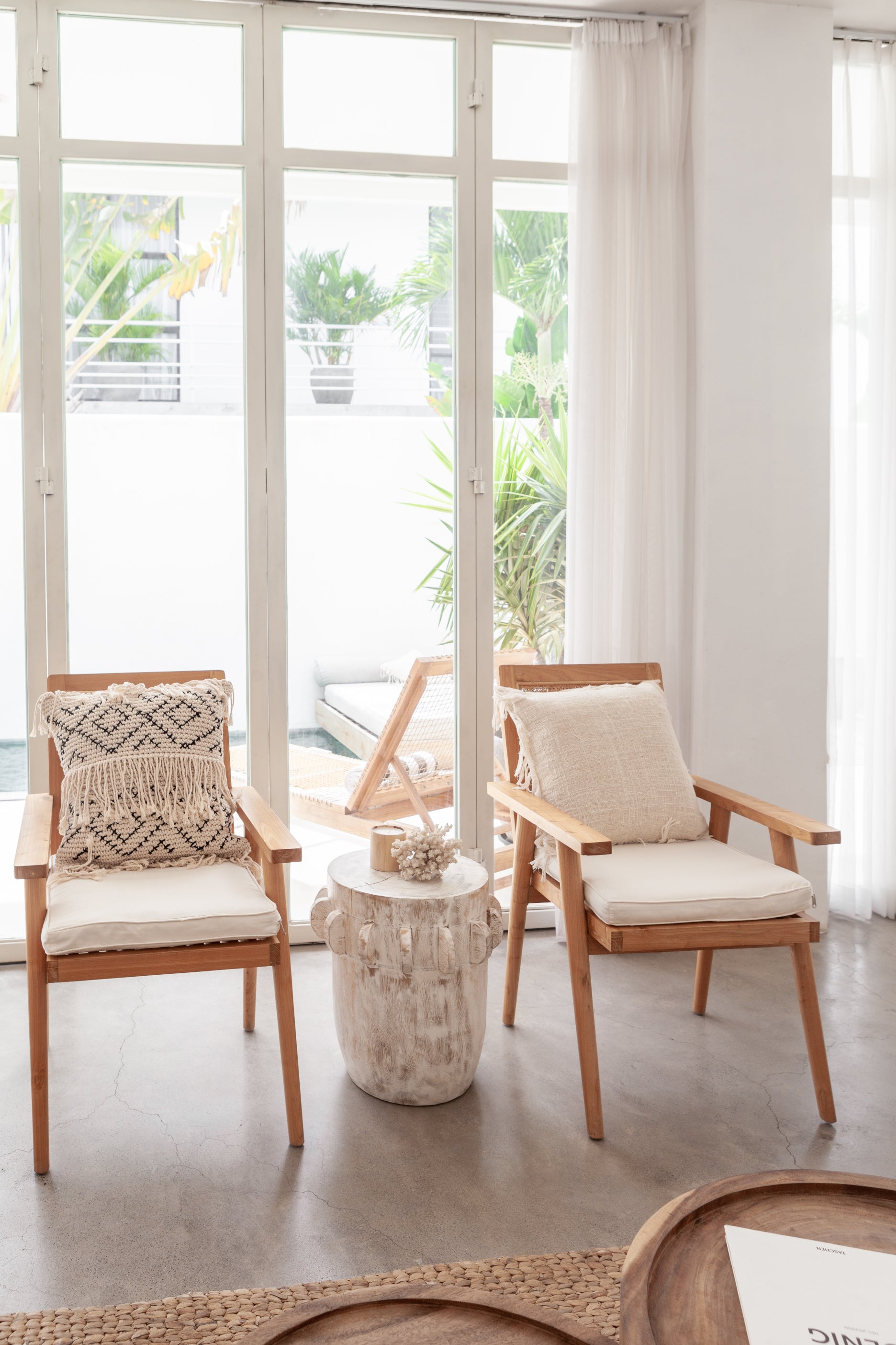 Natural and neutral, warm and cozy, sustainable and organic - all descriptions for our classic Cotton Throw Pillows. Cases available in three sizes and handmade in Bali, Indonesia, they feature a zip closure on the back and tassel fringe on all sides.