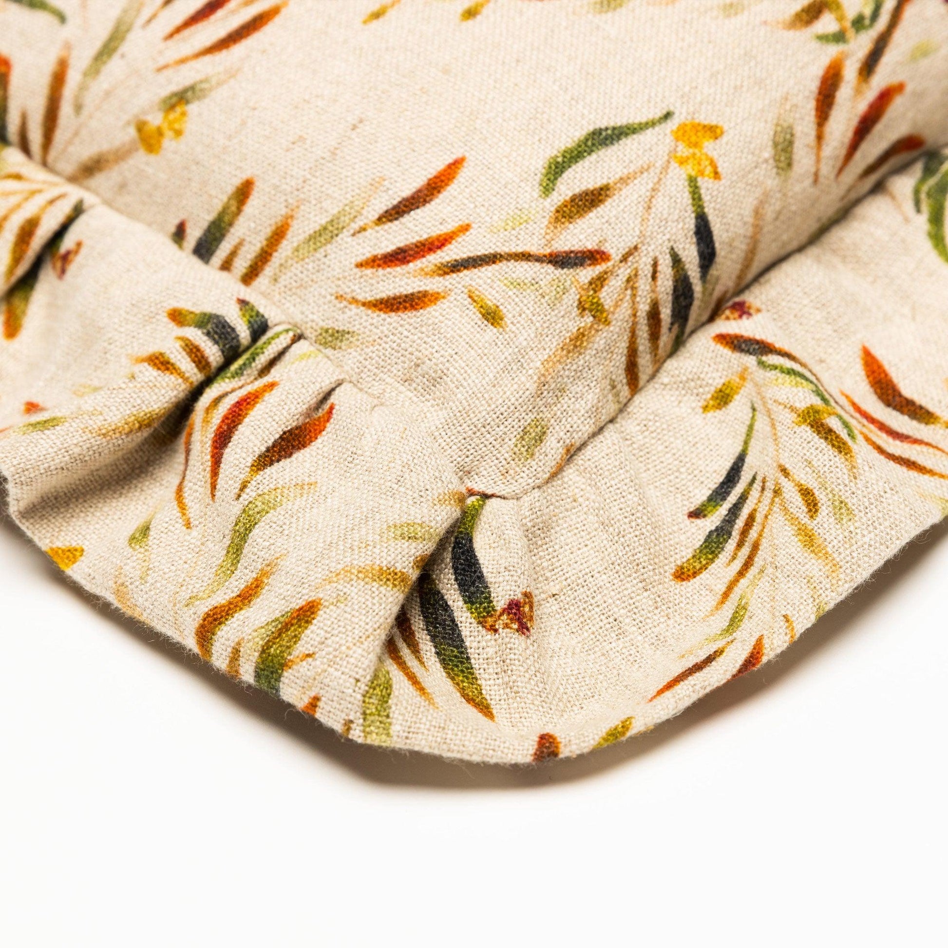 Dreamy ruffled pillow with whimsical palm leaf print - yes, this is it! Printed with low impact dyes and made of organic linen. No toxins here, what a dream!