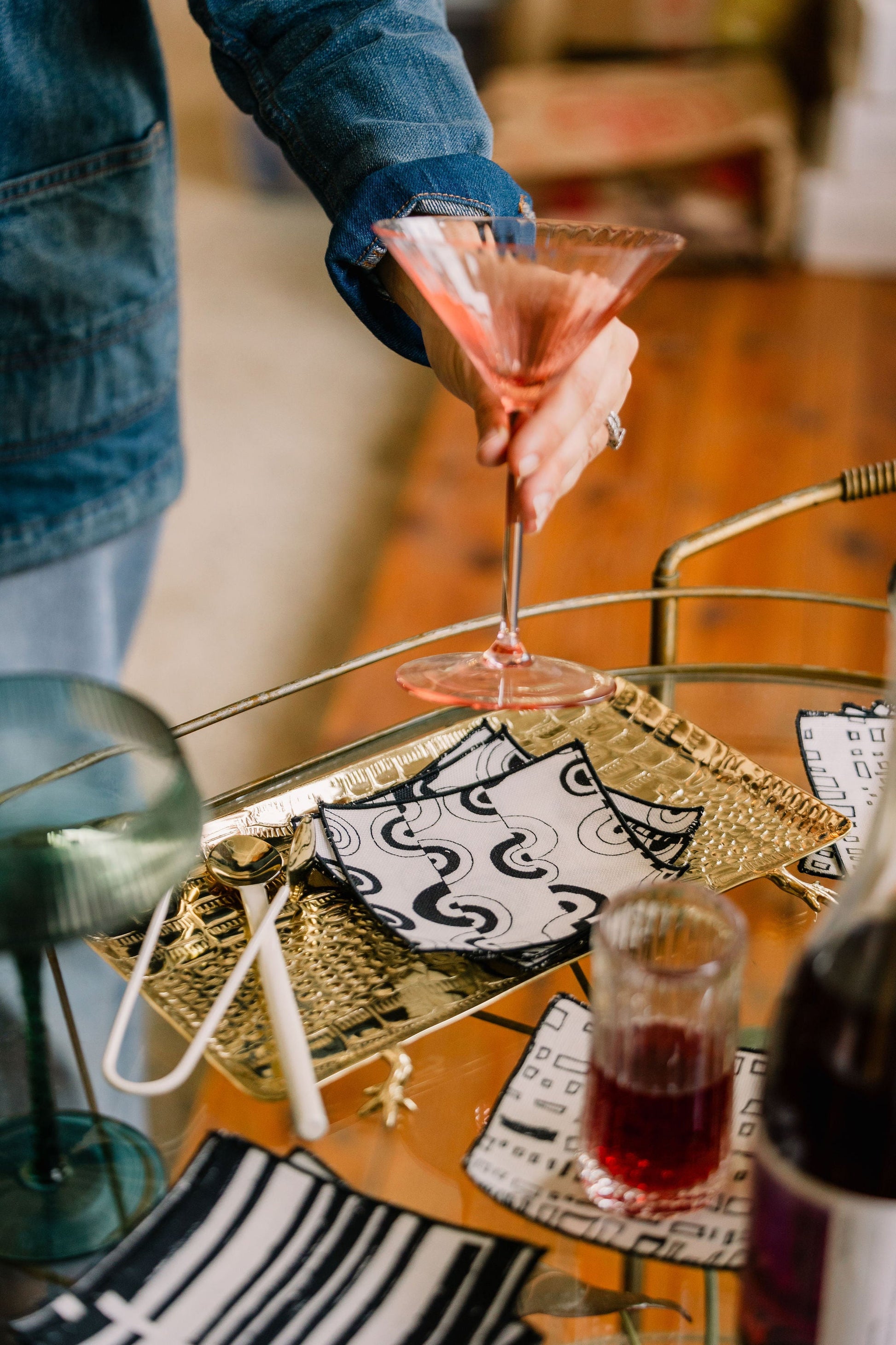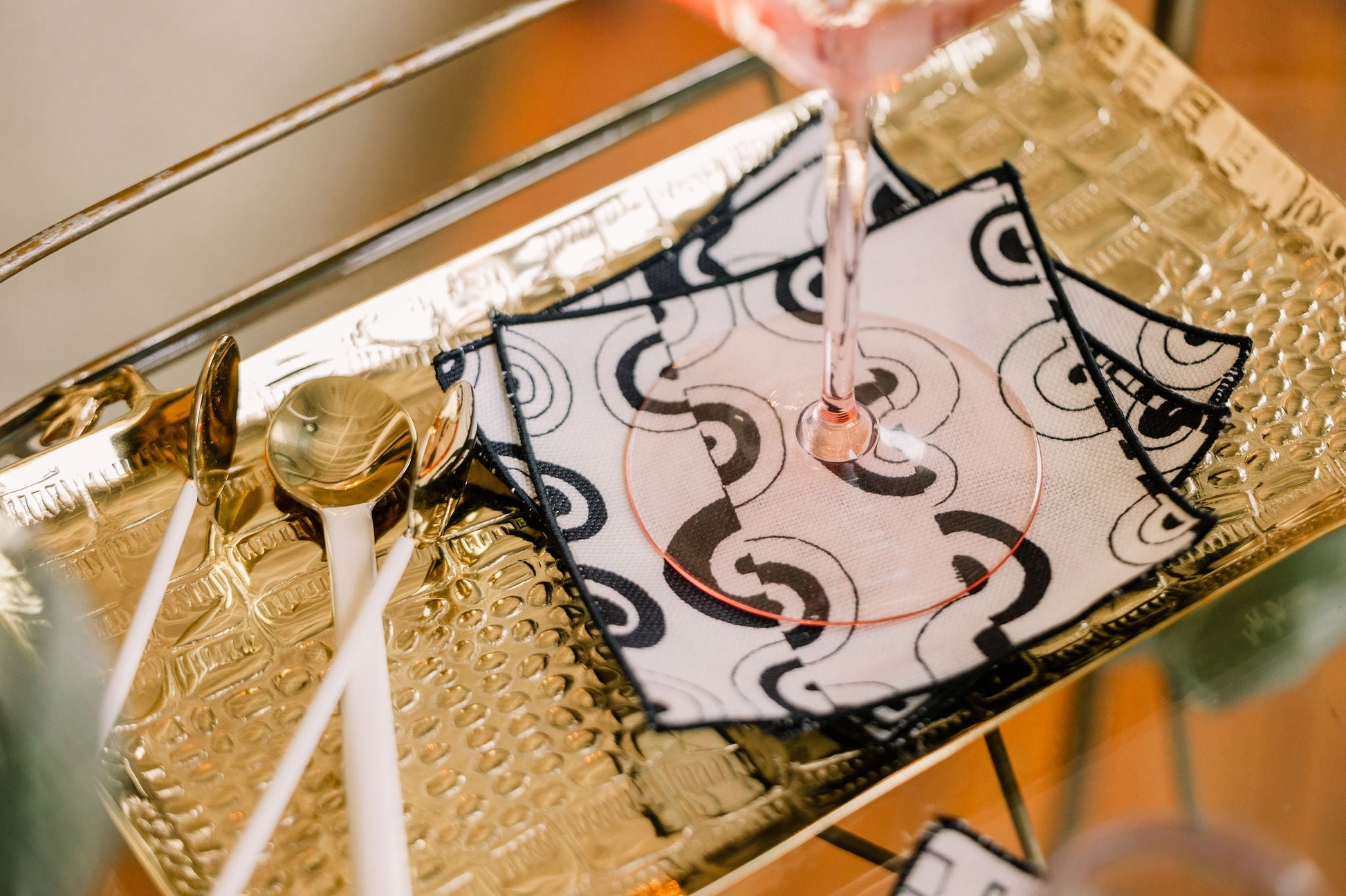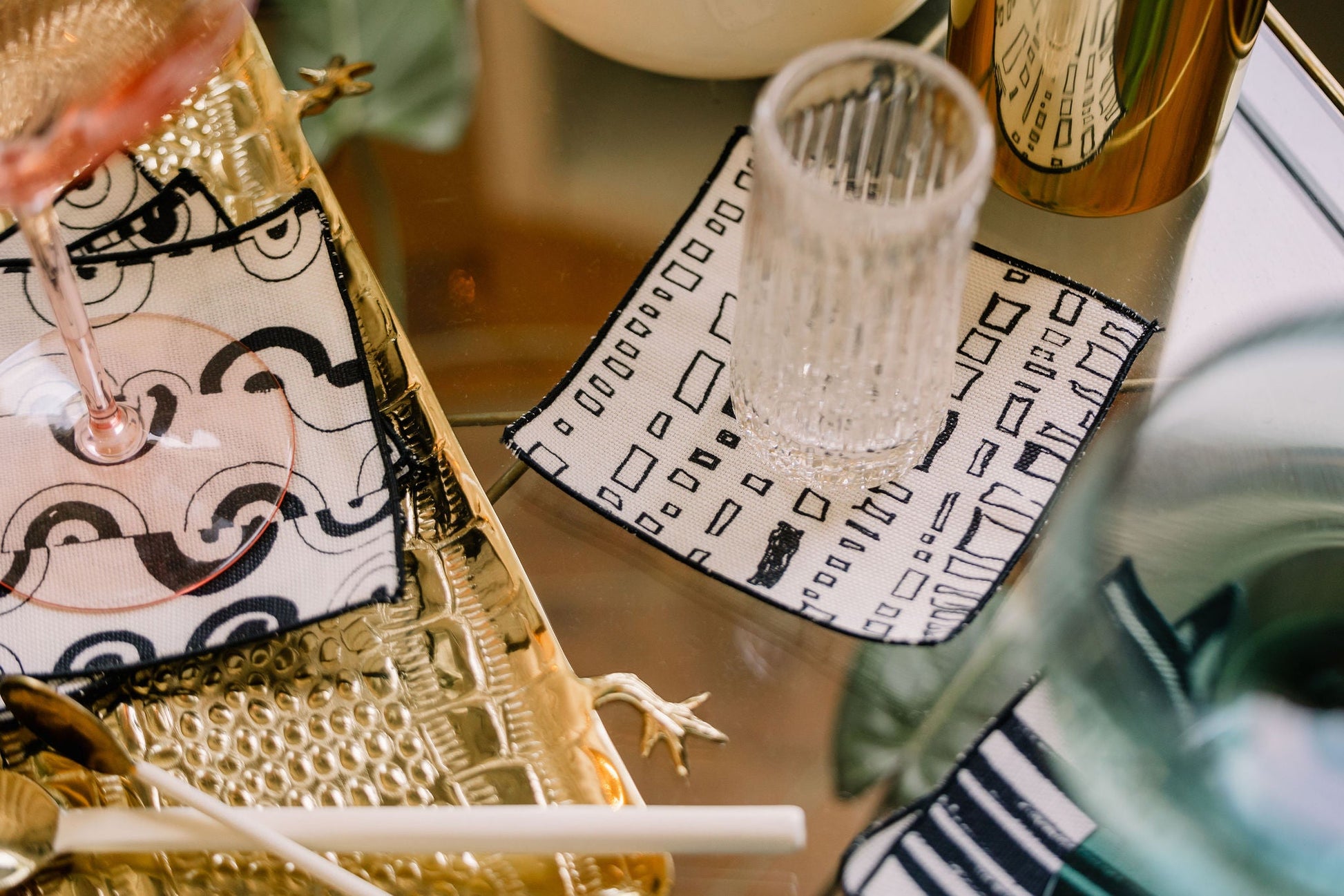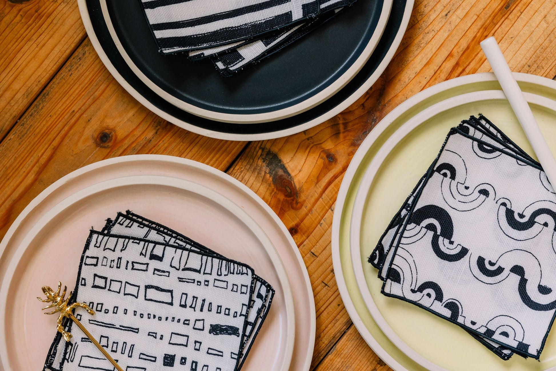 A playful addition to the collection, this cocktail napkin was born from an artistic collaboration in sustainable problem solving.