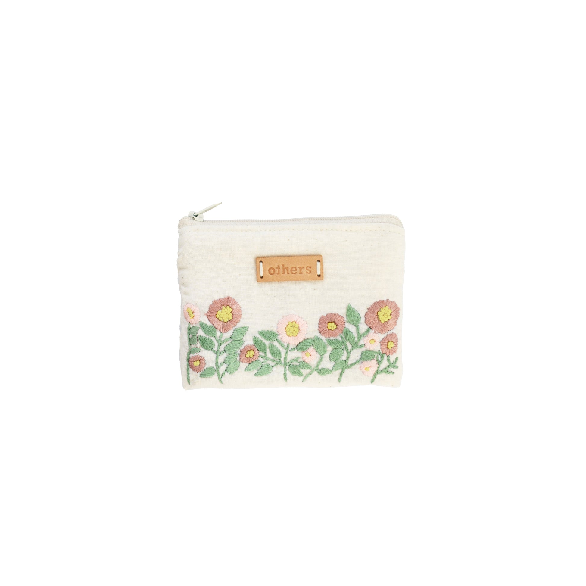 This beautiful purse is hand-embroidered in Bangladesh with floral embroidery. Embroidery is important to our production, empowering artisans to work from anywhere, even in remote villages with limited job opportunities. Women can embroider from home or join producer groups at local Salvation Army centers. For many, this marks their first chance at earning an independent income. By working for Others, they can support their families, enhance living standards, and provide education for their children. Made In: Bangladesh Material: Cotton, foam lining, leather Size: 8 x 12 cm Color: Natural/pink