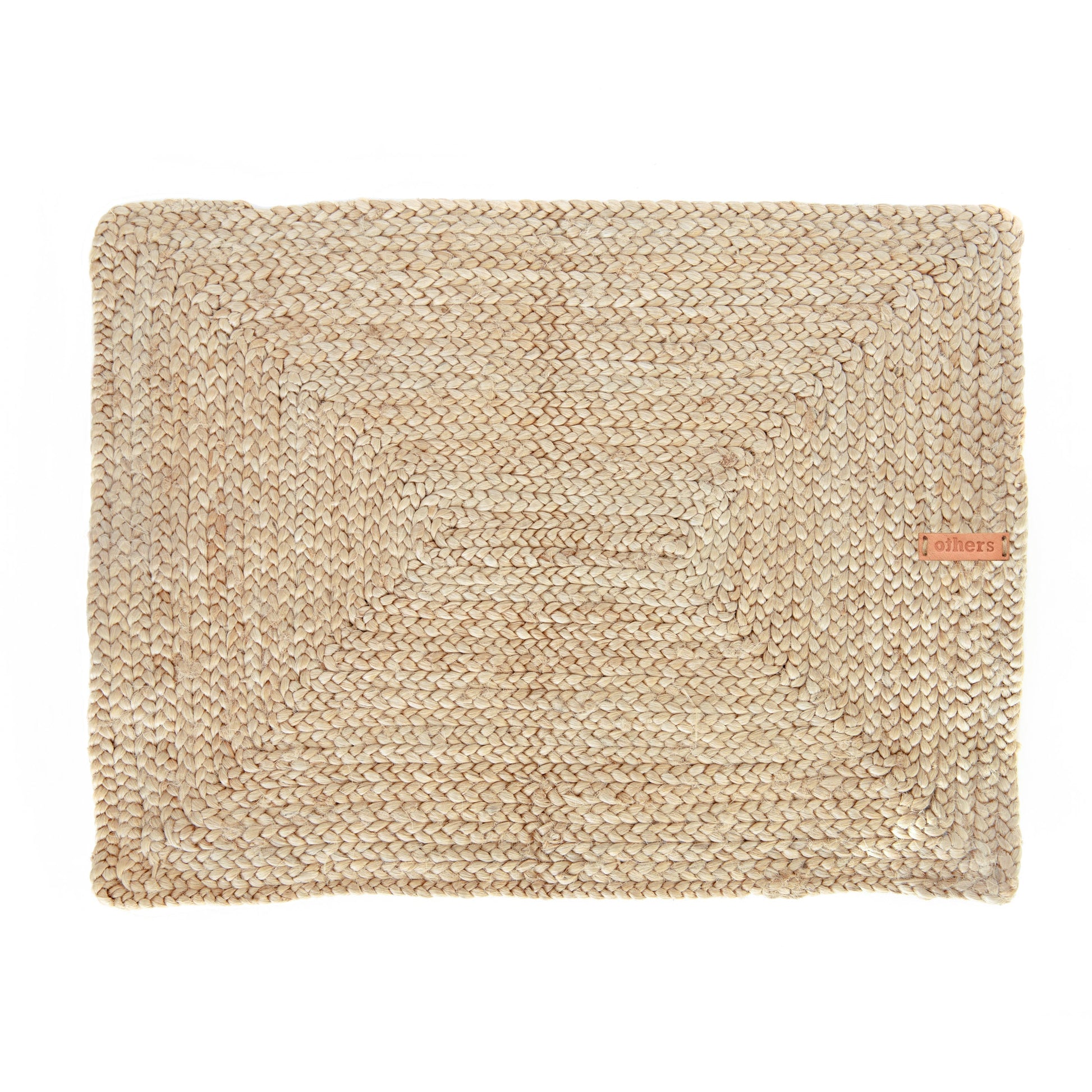 This placemat is made in Jhnaidah, Bangladesh, from natural jute fibers. Our artisans are involved in all steps of the process from harvesting the fibers to washing, drying, and braiding the final product. Working for Others allows our artisans to provide for their families, improve their living conditions, and put their children through school. Slight variations in the rectangular shape are to be expected, because it is handmade. Made in: Bangladesh Material: Jute Size: 45 x 34 cm Style: Rectangle Color: Natural
