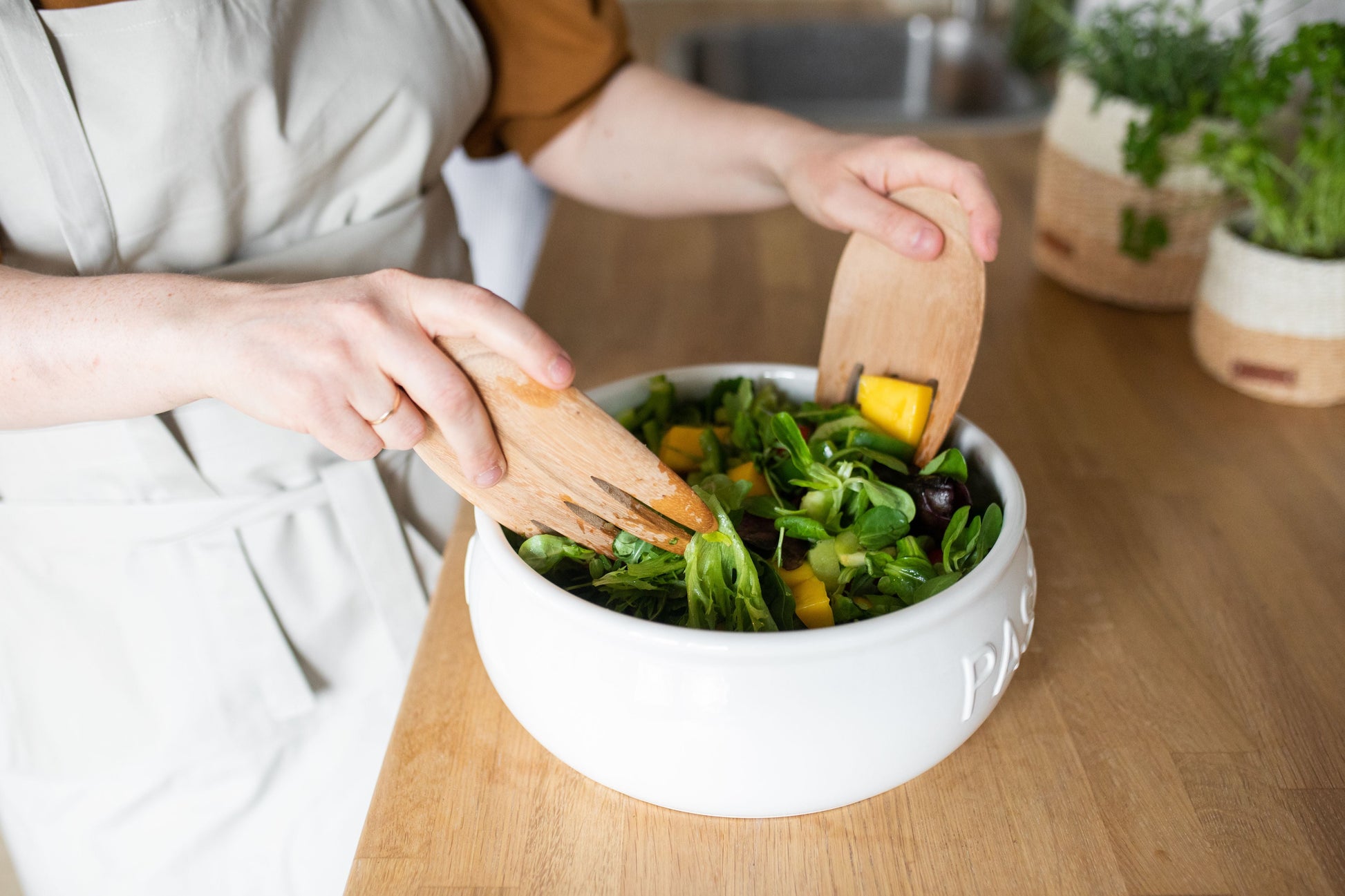 These wooden salad claws are the perfect extension of your hands to mix and serve salad. They are handcrafted by skilled carpenters at our own workshop in the city of Jashore, Bangladesh. We use sustainably sourced local wood called Albizia Saman, which is typically grown in yards and by road-sides, and sold when a family needs an extra source of income. The product is sold un-treated, but can be treated with a light coating of oil if desired. Hand-wash is recommended. Made in: Bangladesh Material: Wood (Rain tree) Size: 9 x 15. 5 cm Color: Natural