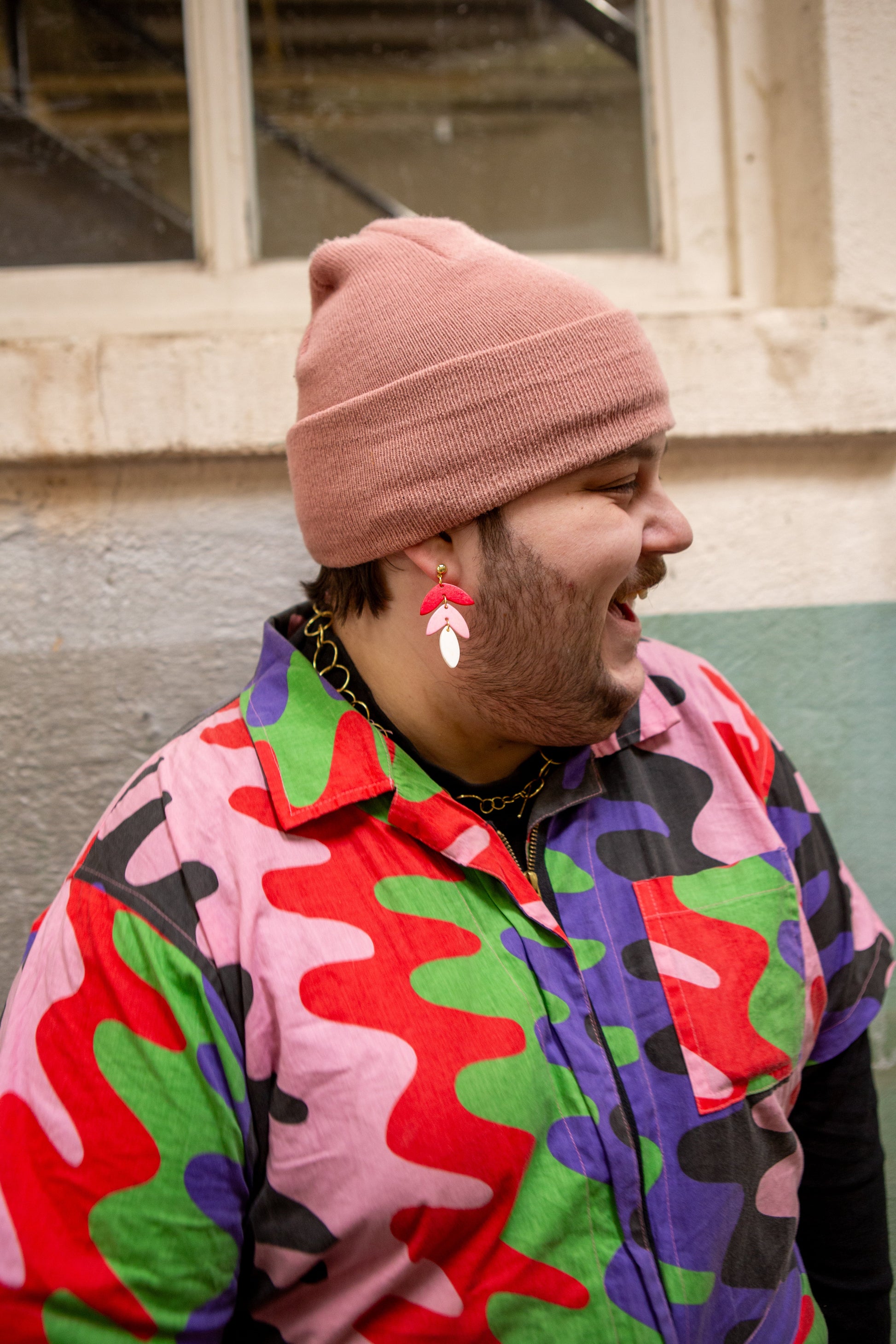Pink Caladium Bone Earrings