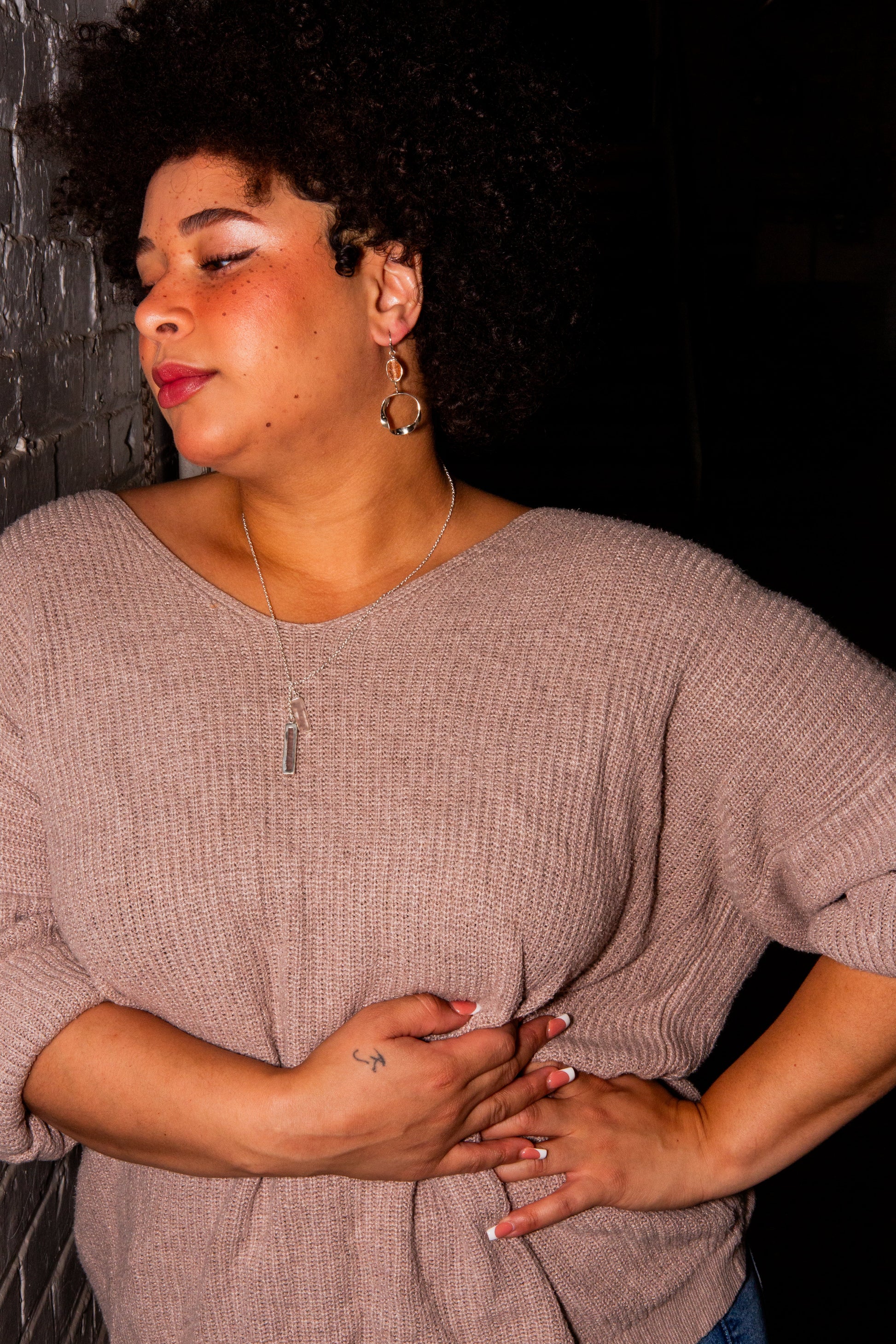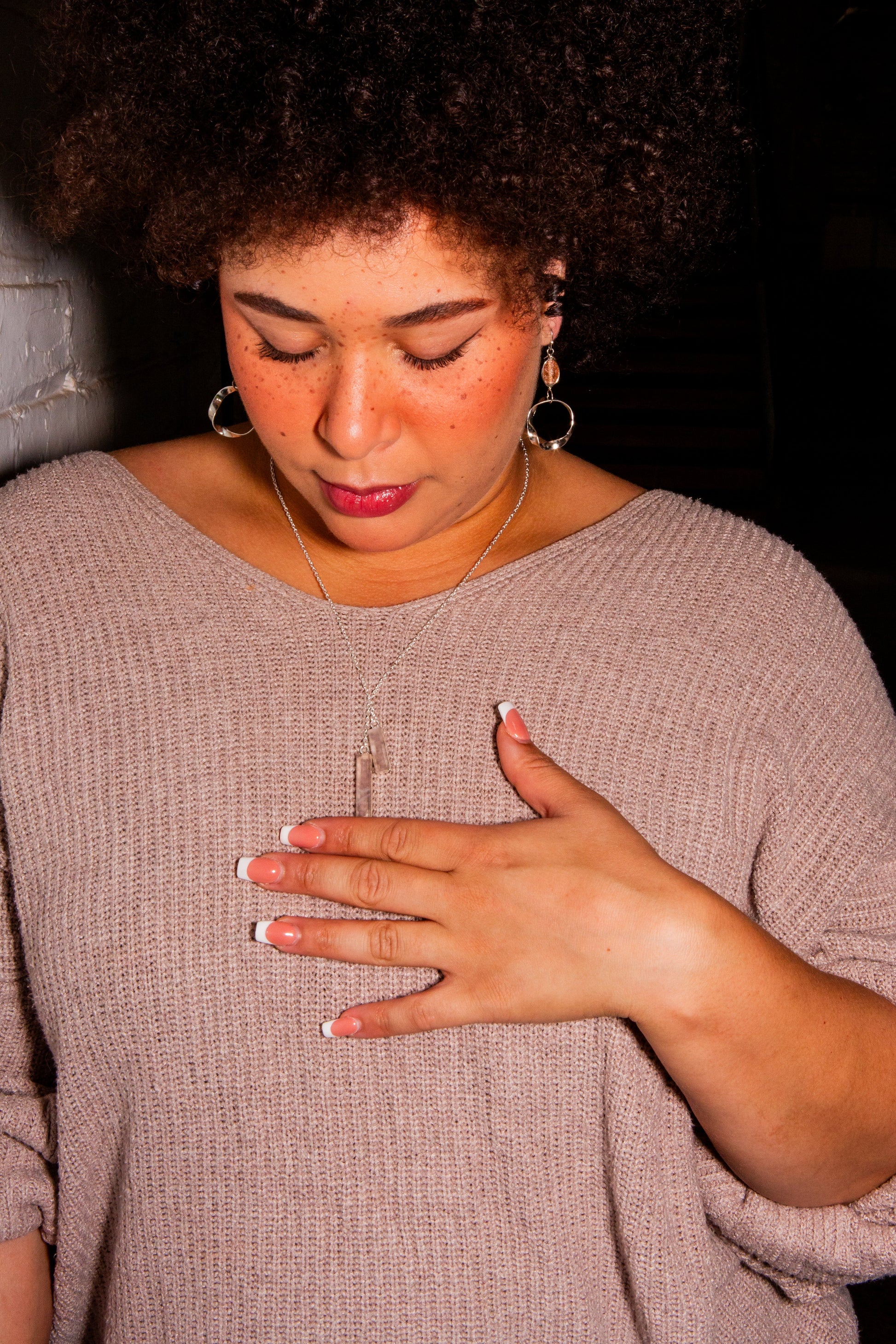 Made from silver-plated recycled brass and recycled glass. Nickel-free.