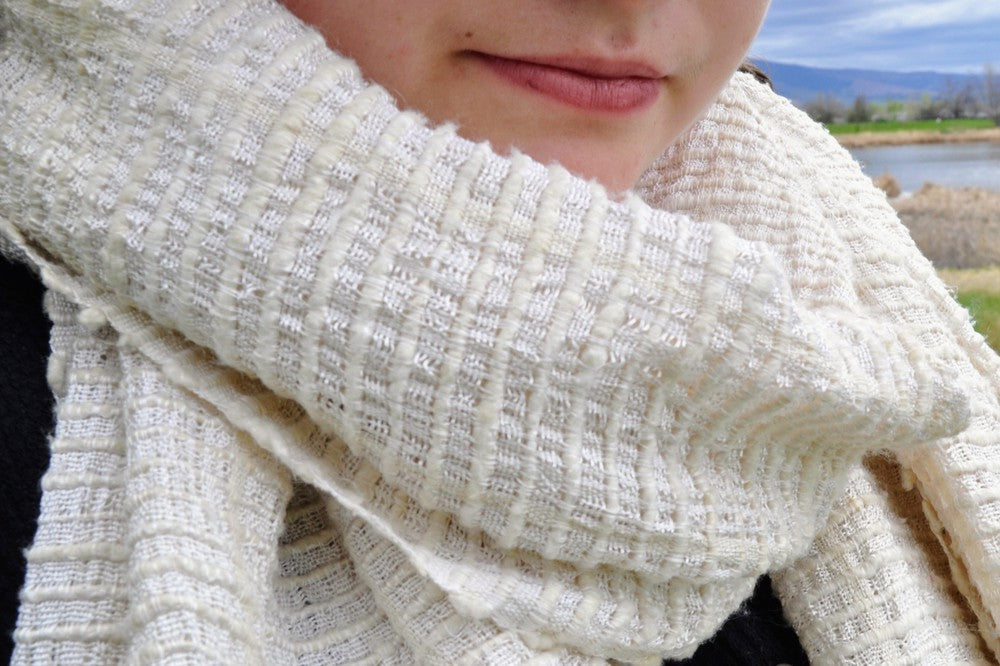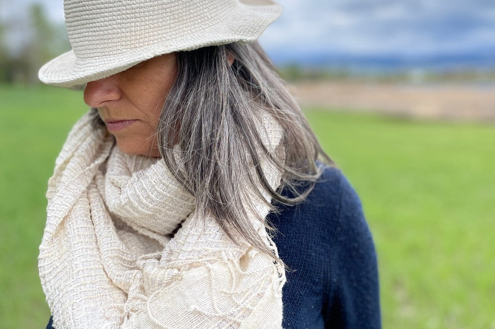 These silk shawls are made of a combination of Ethiopian Eri and Mulberry silk. The Eri silk is from Ethiopia and hand spun on drop spindles. The Mulberry silk is imported from India. They are finished with our signature twisted fringe. The combination are unique, delicate, graceful shawls. These shawls are named after Ethiopia's most famous queen- Queen Saba (or Sheba).