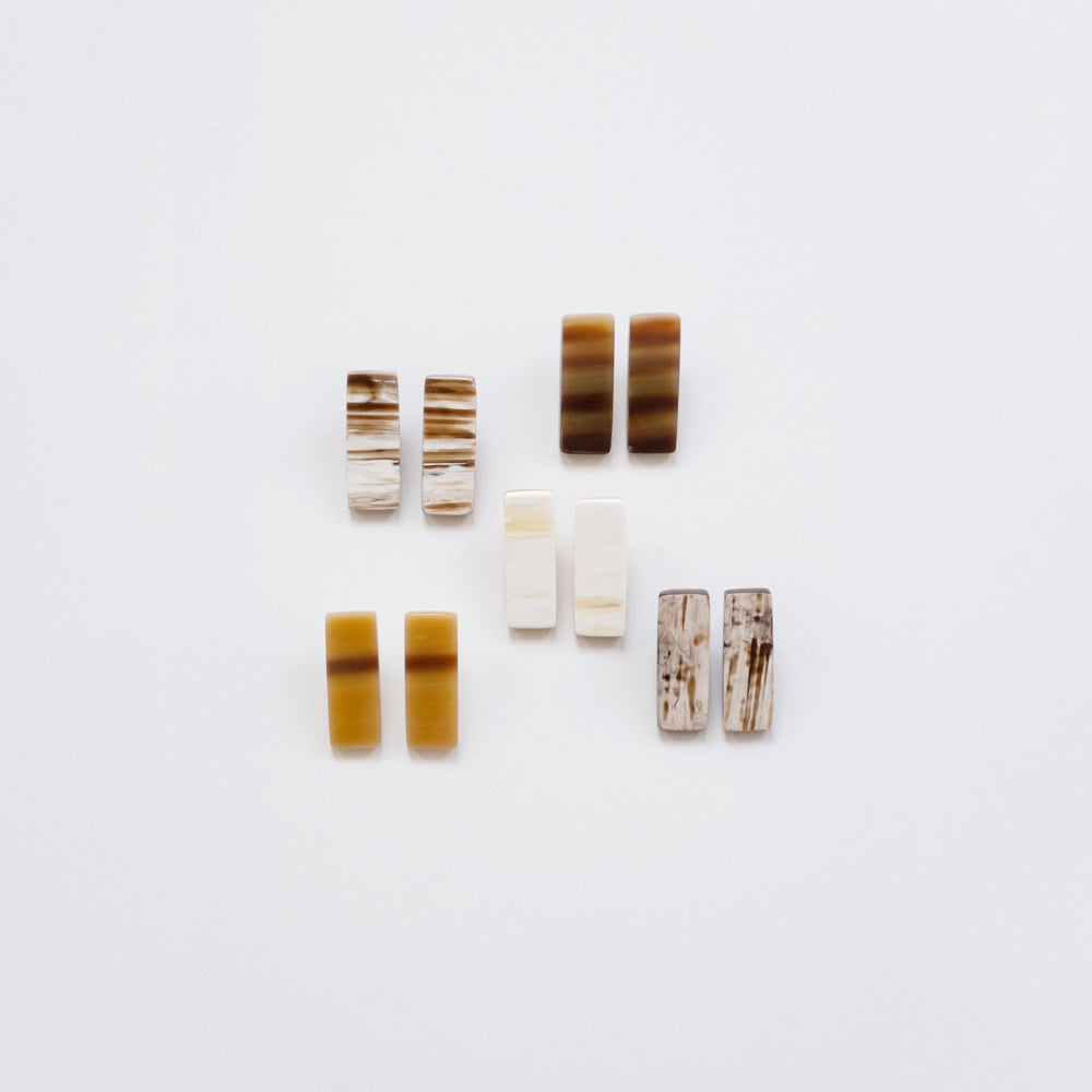 Hand carved and polished cow horn post earrings in a easy, simple Rectangle design. Assorted color tones.