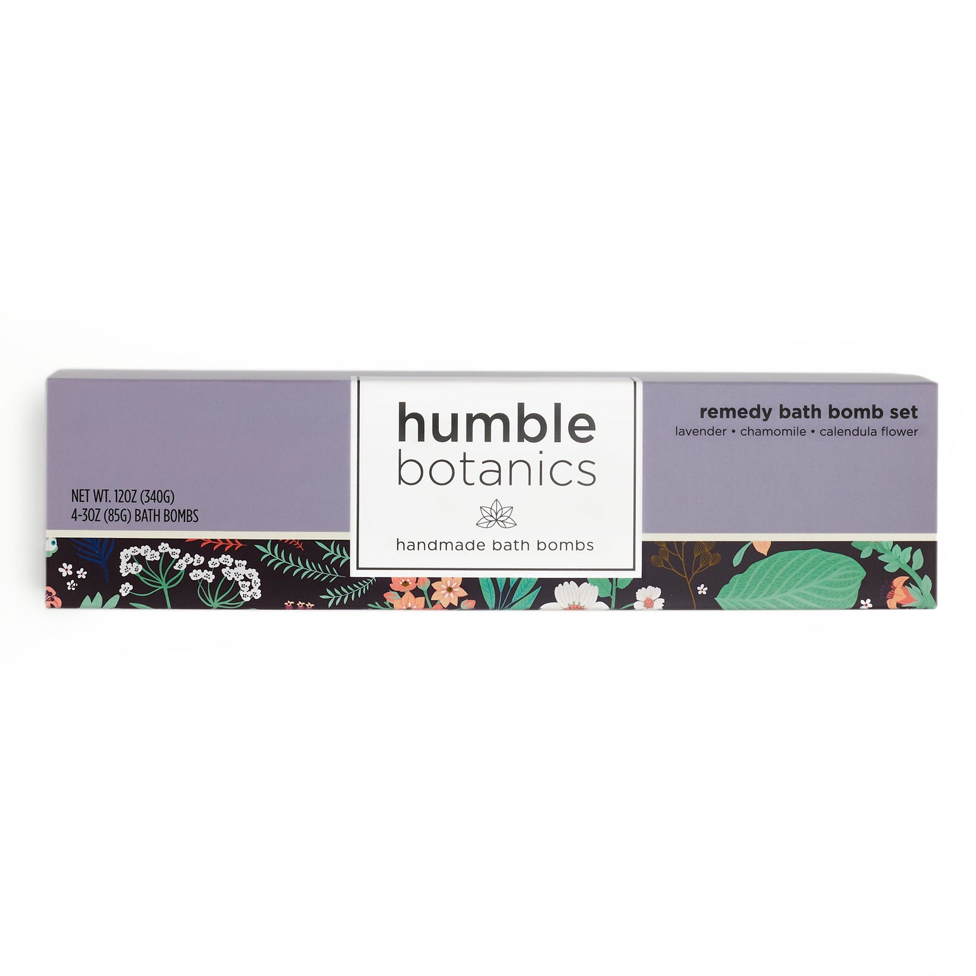 Includes 4 bath bombs infused with lavender, chamomile, and calendula