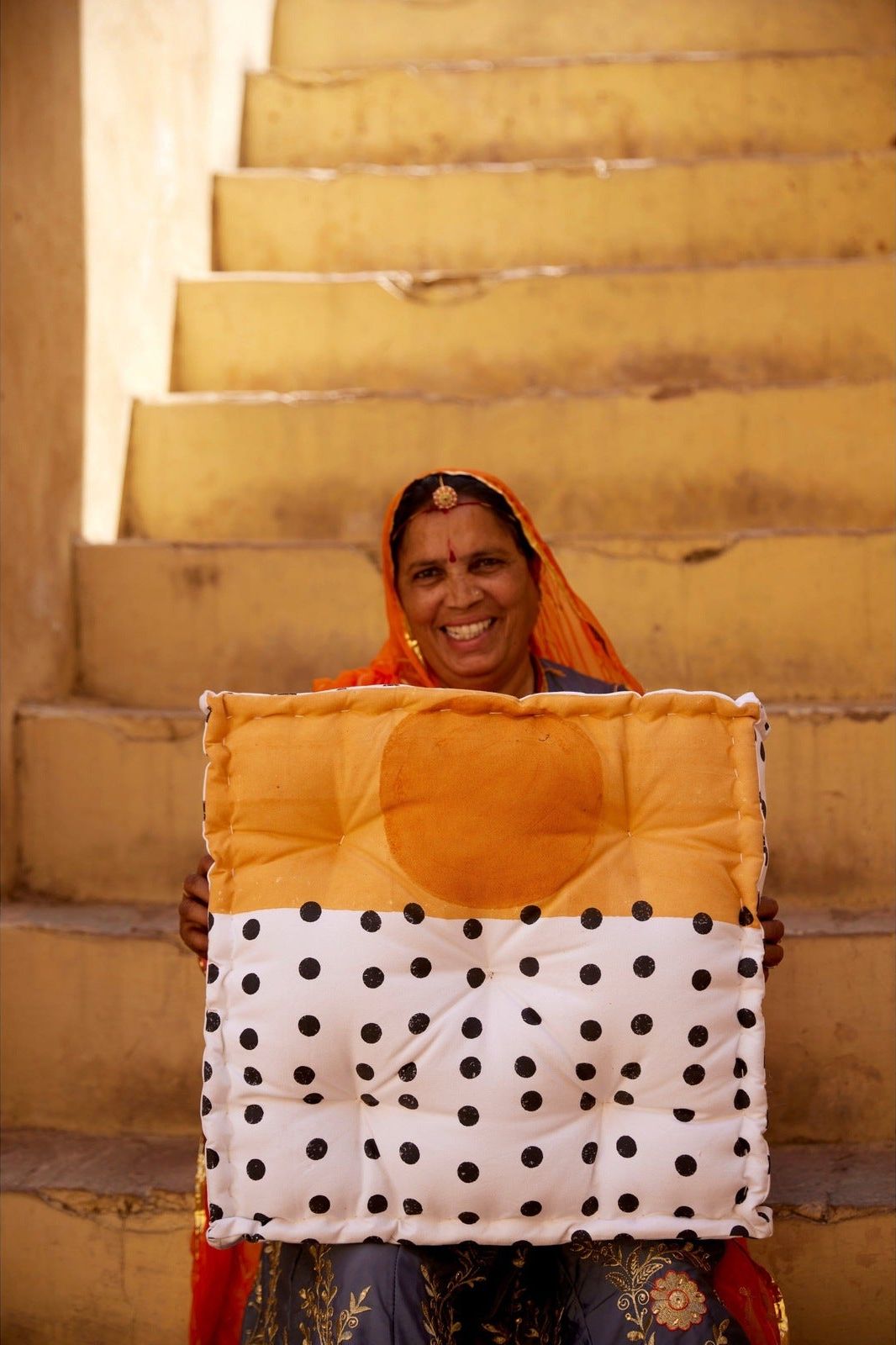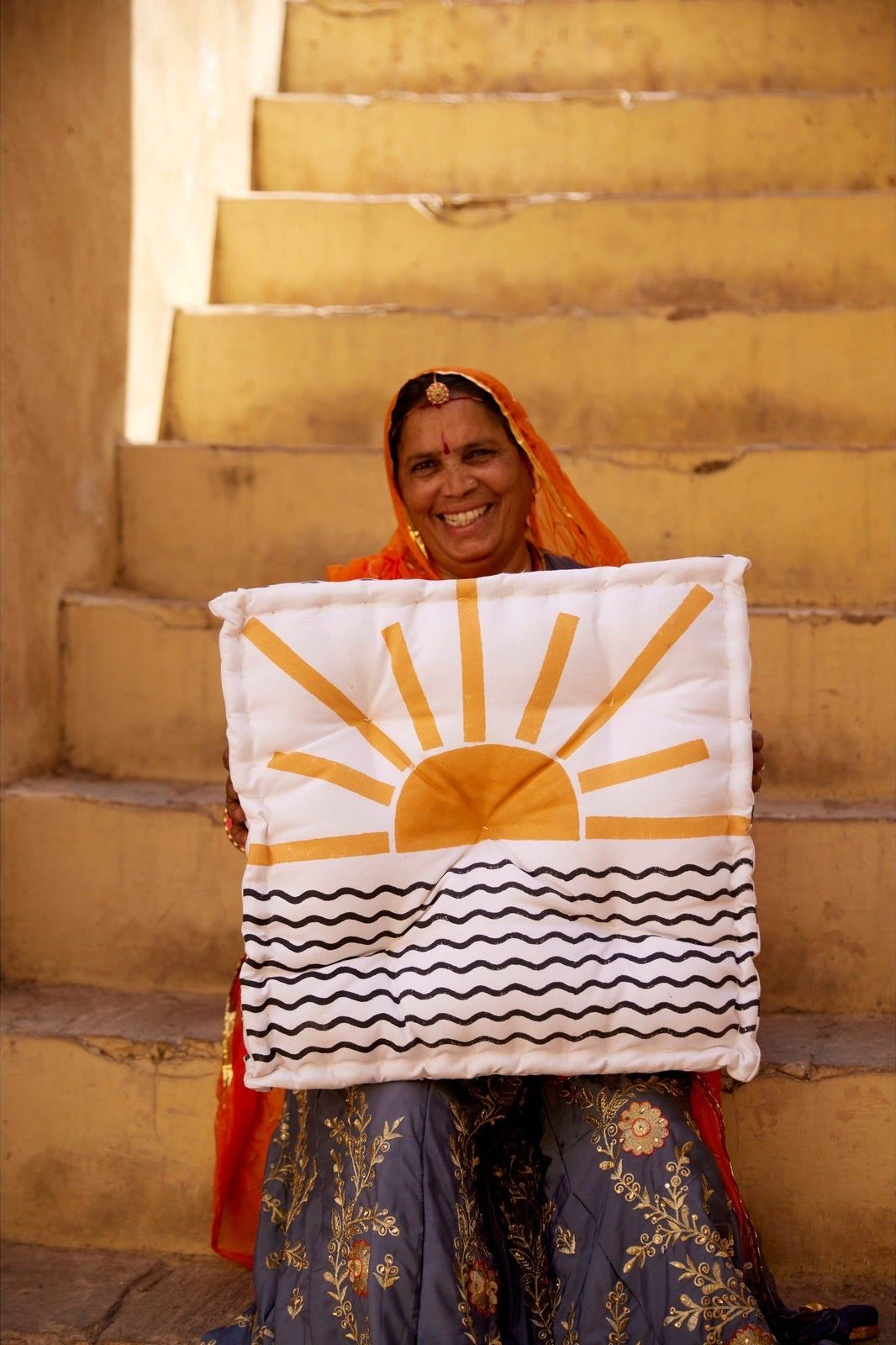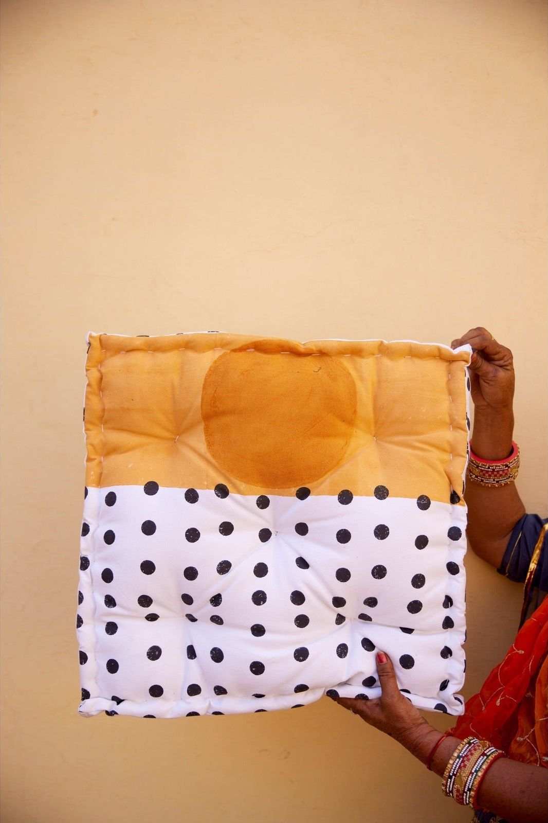 Each floor cushion is handmade, requiring attention from four types of artisans, including wood carvers, block printers, sewists, and dye specialists. The cushion’s design is hand-pressed onto cotton using hand-carved wooden blocks dipped in dyes. The printed cotton shells are then brought to the homes of sewists who stuff and stitch the pillows by hand, creating the final product. Our floor cushions are made in small batches. Due to the handcrafted nature of this item, expect slight variations in the appearance of each unique piece. - 100% cotton exterior - 100% cotton stuffing - Size: 20" x 20" x 6" - Reversible design - Made in India - Ships from California