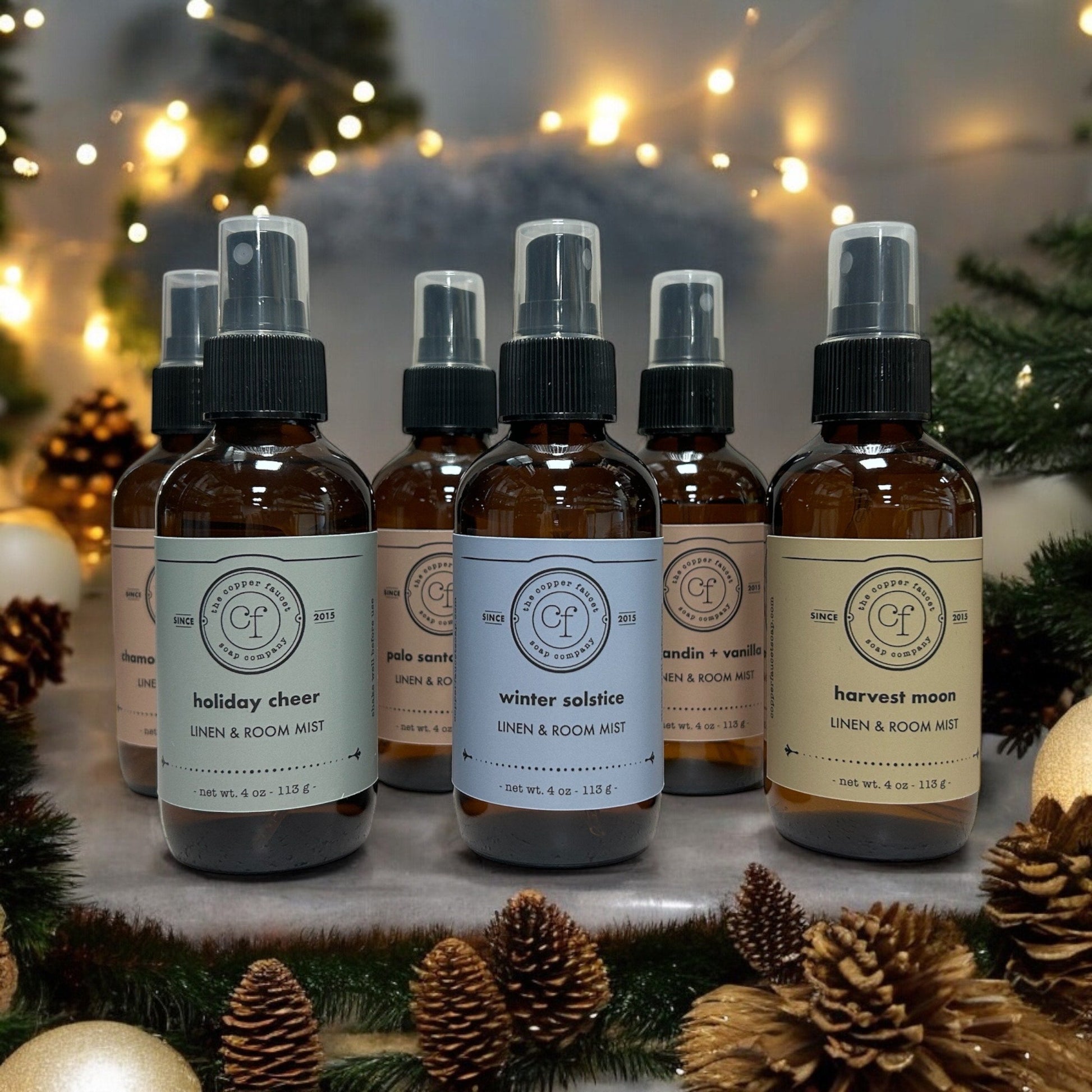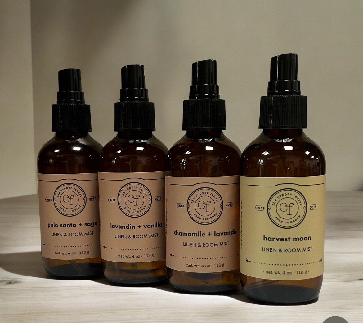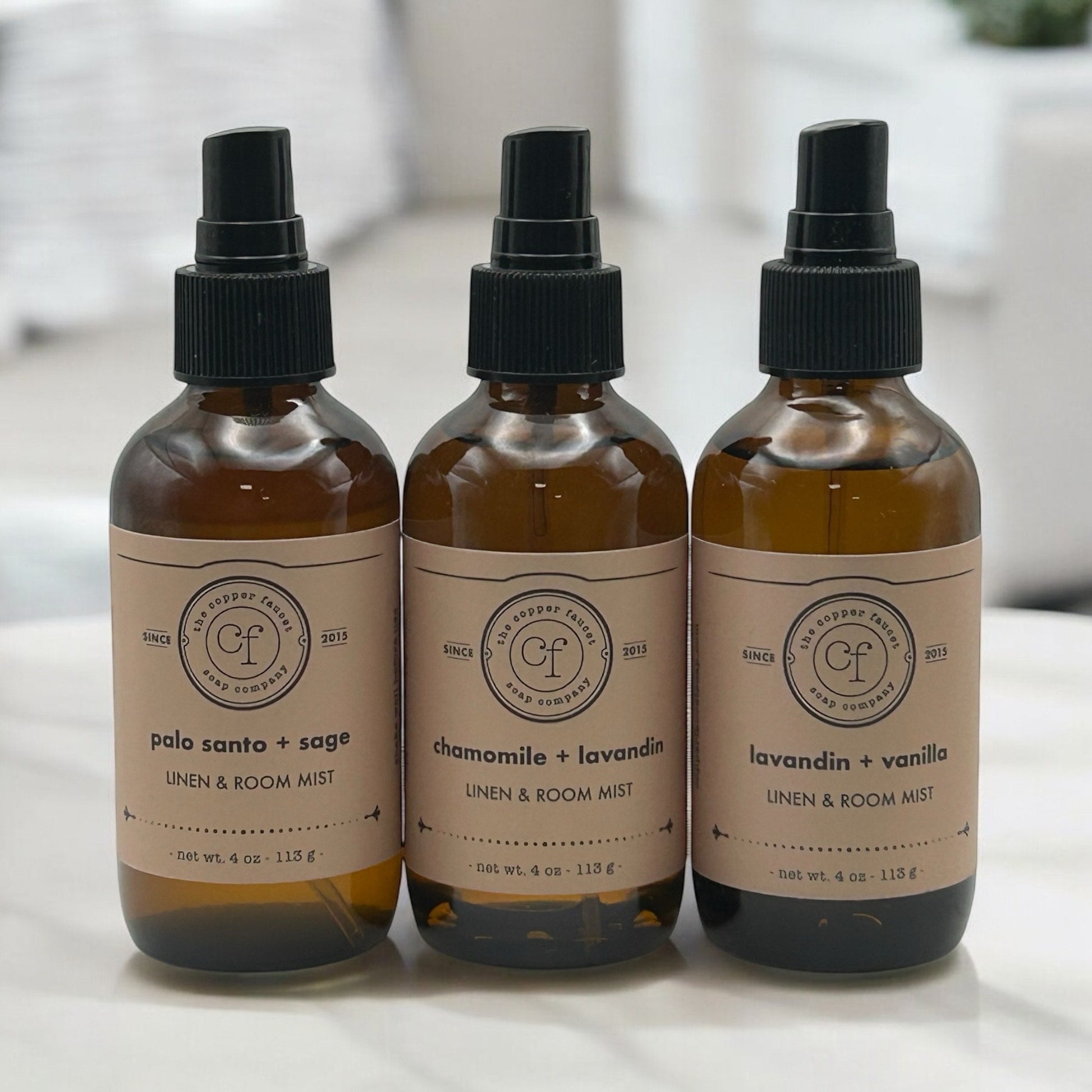 NOTE: while our room + linen mist are skin safe, they are not recommended to be used as a body spray. When misting, keep away from furniture as the mist does contain oil that can stain furniture.