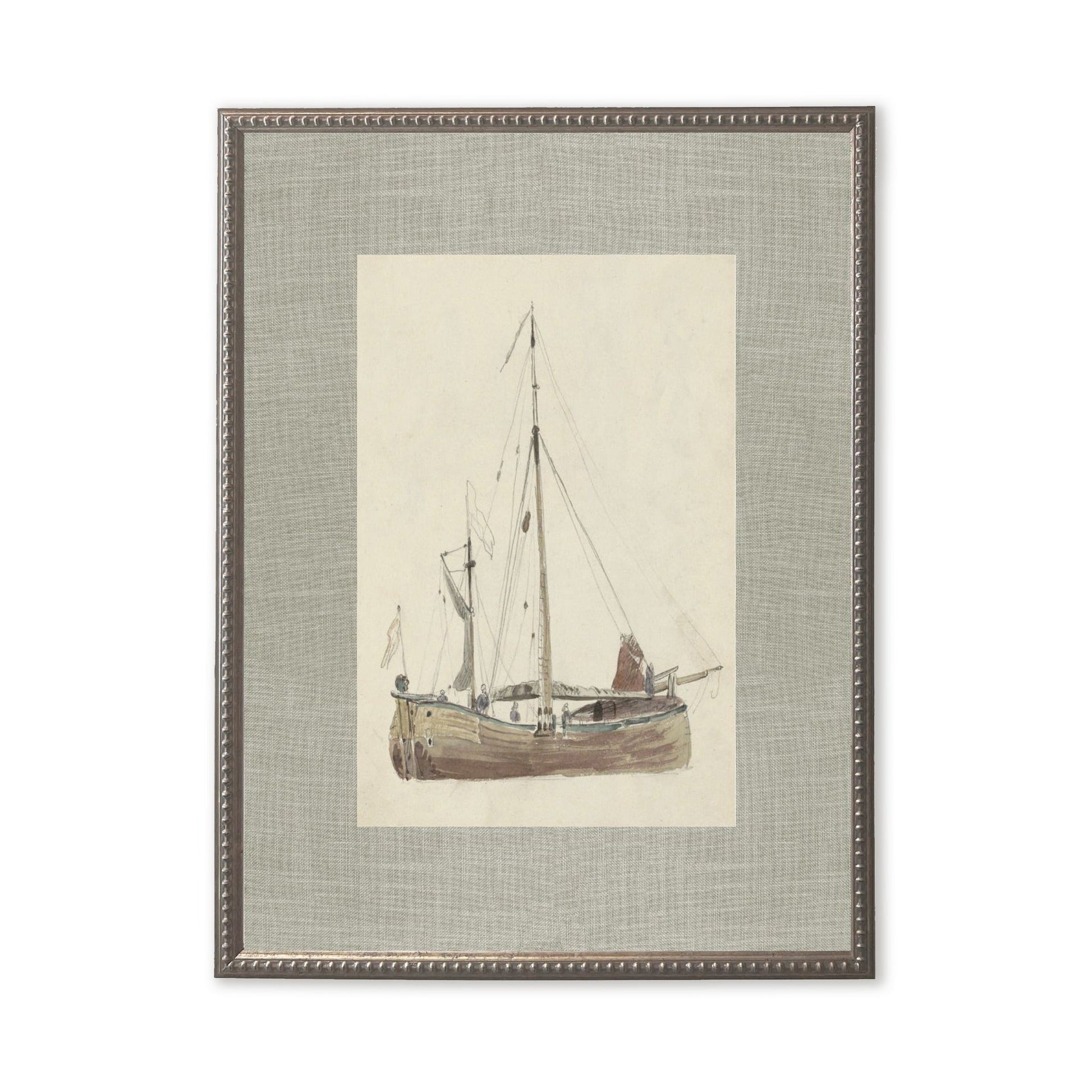 This watercolor reproduction, matted and framed in a silver-beaded wooden frame, features a painted sailboat. Sized at 16 inches by 20 inches, this made in the USA frame makes for a beautiful addition to any wall. Made in USAMade with real woodHangs from back-mounted hardwareEncased in glass