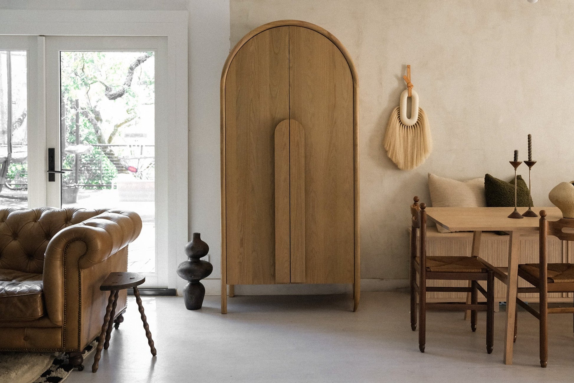 The vessel’s deep, earthy brown color and textured vintage finish further enhance its striking form, offering a subtle yet bold contrast in both traditional and contemporary interiors. Whether used as a decorative vase for botanicals or displayed as a standalone piece, the Sewu Vessel serves as a statement of refined artistry and cultural heritage.