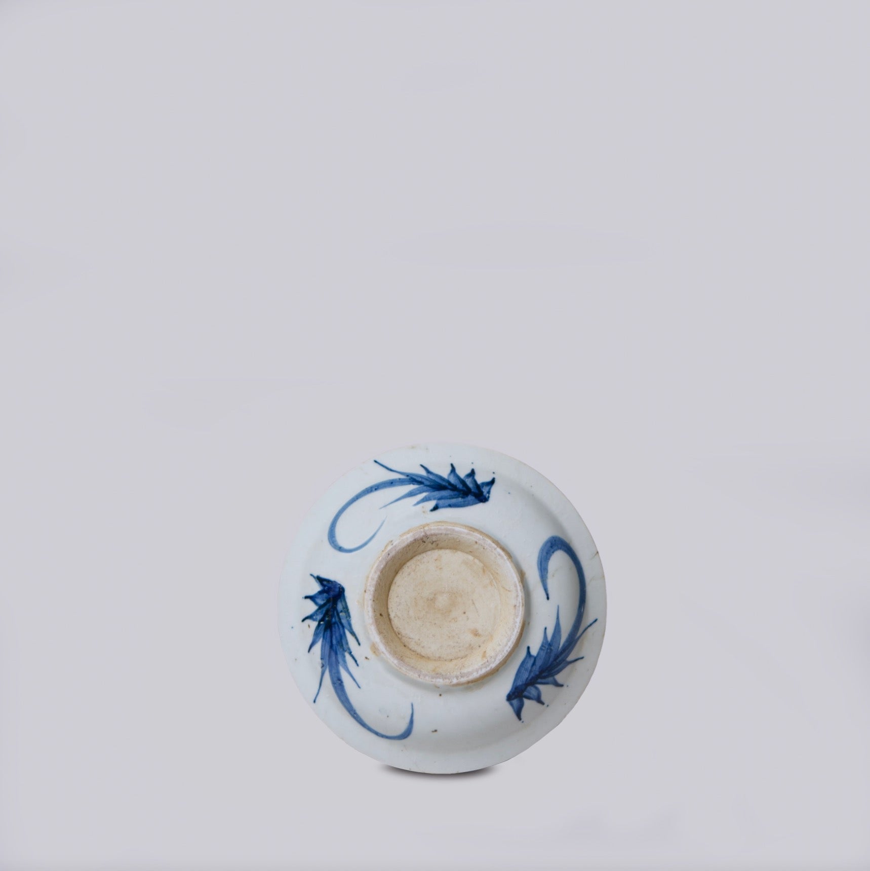 Cobalt Guild offers an assortment of blue and white porcelain vessels from the antiques markets of Jingdezhen, a town long distinguished by imperial patronage. This piece is a small dish with a hand painted character proverb motif, 7" x 1 1/2"