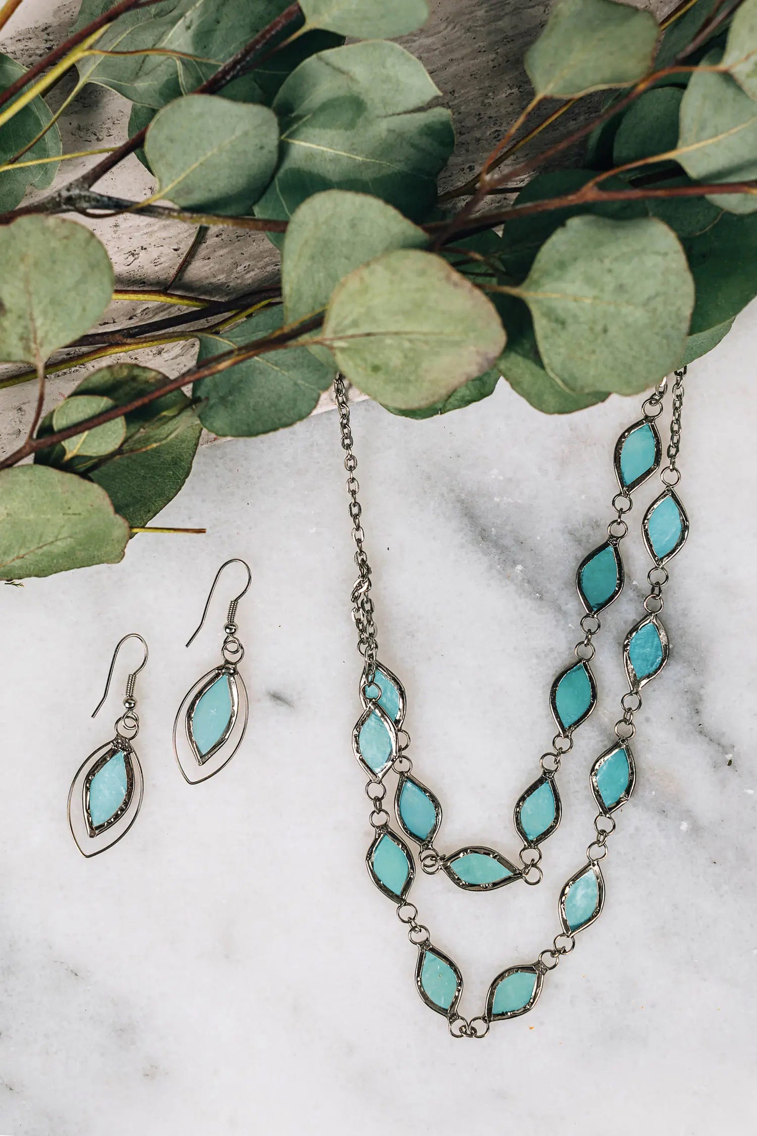 This necklace has a soft shimmer that can only be achieved through use of capiz shell. The thin shell of the windowpane oyster had once been used for windows in houses, before glass windows became available in the Philippines. Now it can be dyed a variety of colors for use in unique jewelry pieces such as this.
