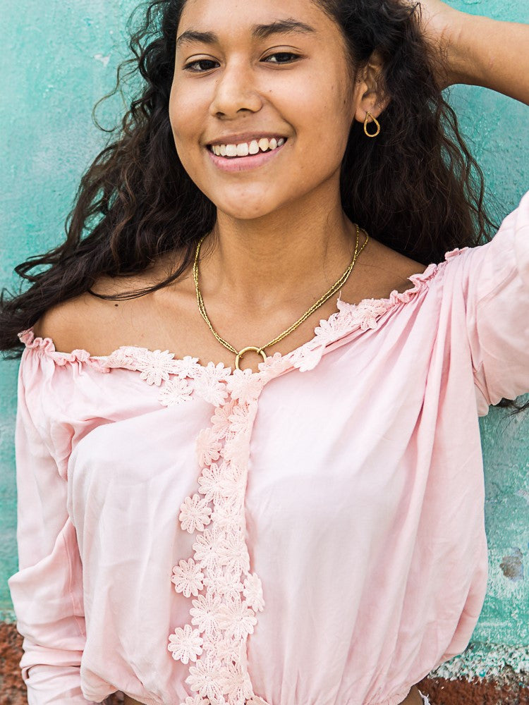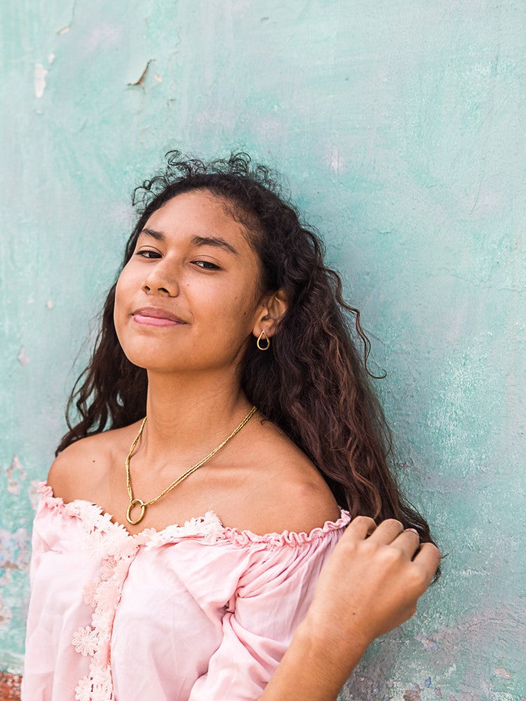This short gold open circle necklace made in Ethiopia is an ethical piece that is right on trend, works beautifully layered with longer necklaces.