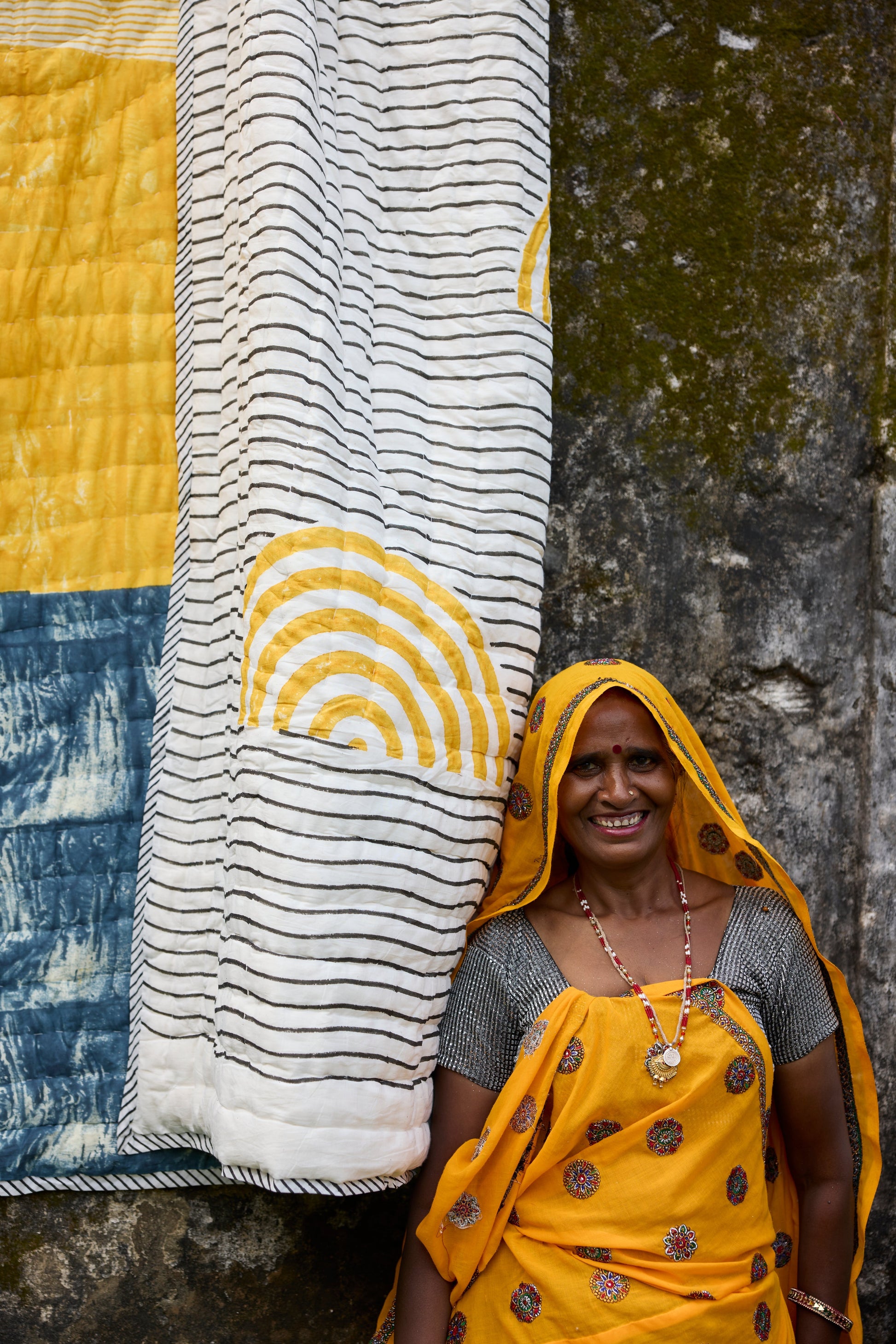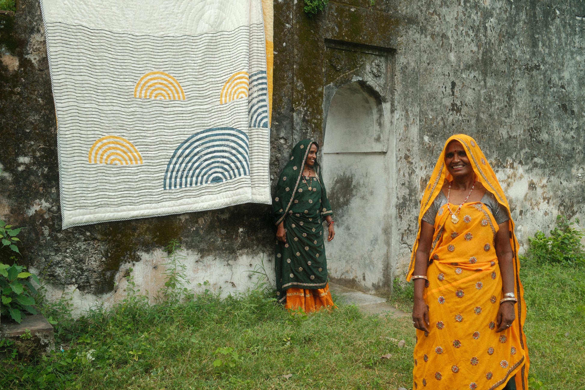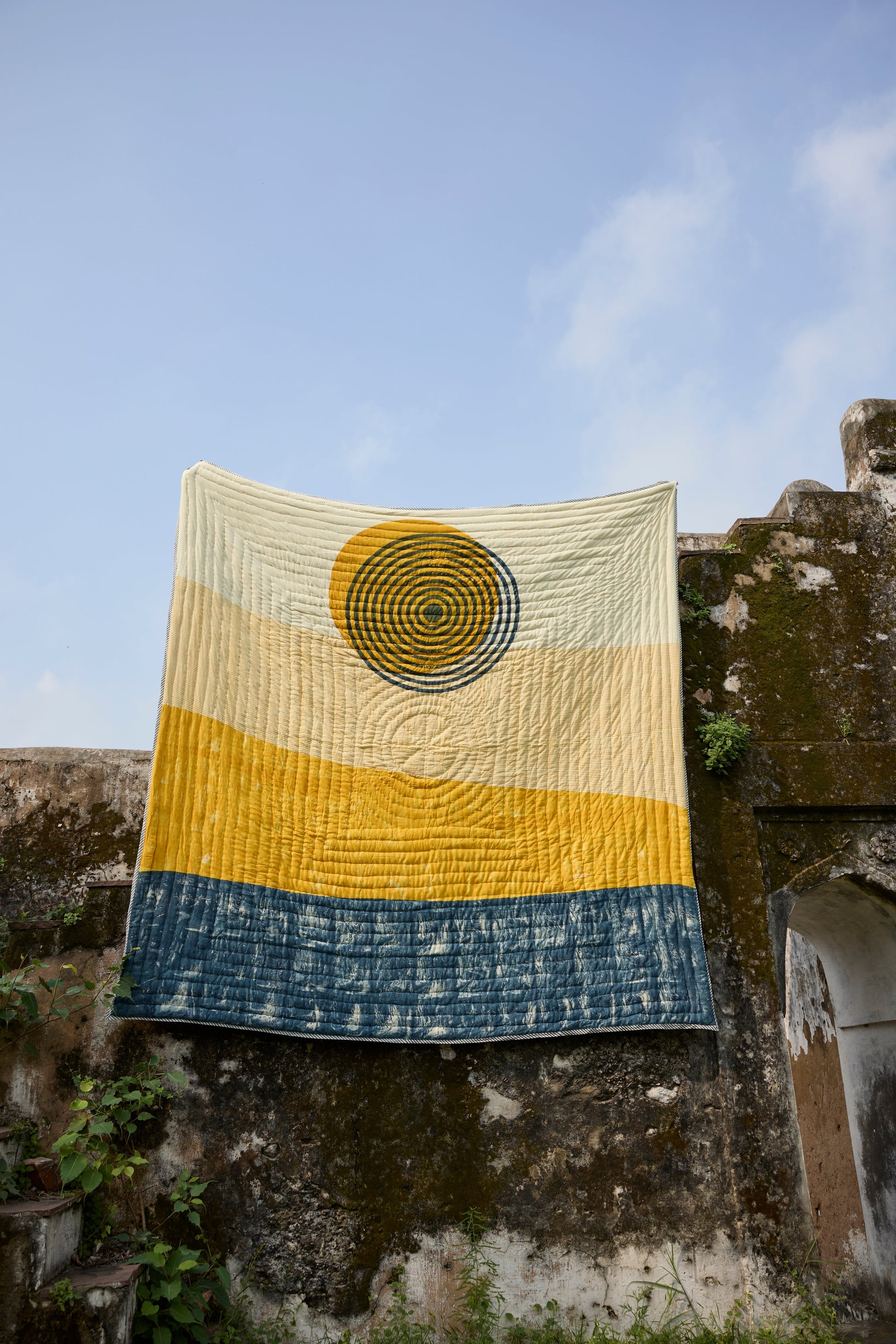 Each quilt is handmade, requiring attention from 4 different artisans, including wood carvers, block printers, quiltmakers, and dye specialists. The design is hand-pressed onto each quilt using hand-carved wooden blocks dipped in dyes. The printed cotton shells are brought to the homes of quiltmakers, who stuff and stitch the quilts by hand, creating the final product. Our quilts are made in small batches. Due to the handcrafted nature of this item, expect slight variations in the appearance of each unique piece. - 100% cotton voile exterior - 100% cotton stuffing - Made in India - Ships from California - Queen size: 96″ x 96″ - King size: 108″ x 108″
